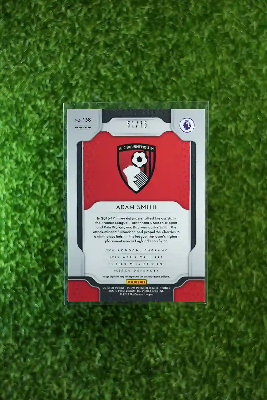 & Free ShippingAdam Smith’s 2019-20 Panini Prizm Premier League Soccer Purple Prizm card, numbered to 75.
