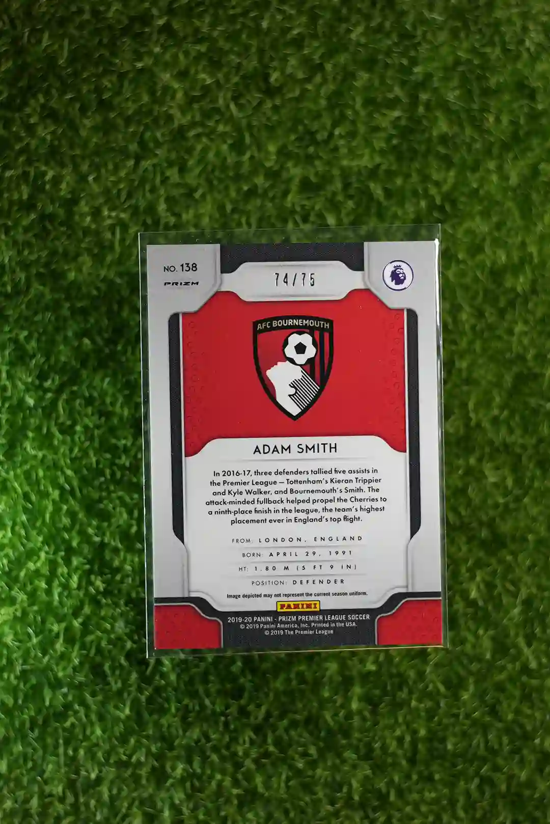 2019-20 Panini Prizm Premier League Soccer Adam Smith Purple Prizm numbered to 75.
