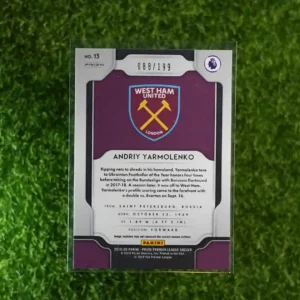 & Free ShippingThis is a 2019-20 Panini Prizm Premier League Soccer Andriy Yarmolenko Blue Prizm card, limited to 199 copies.