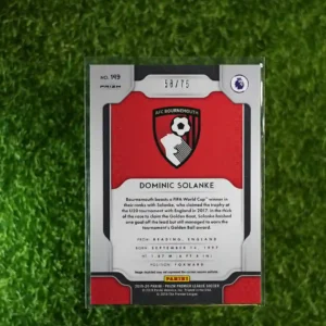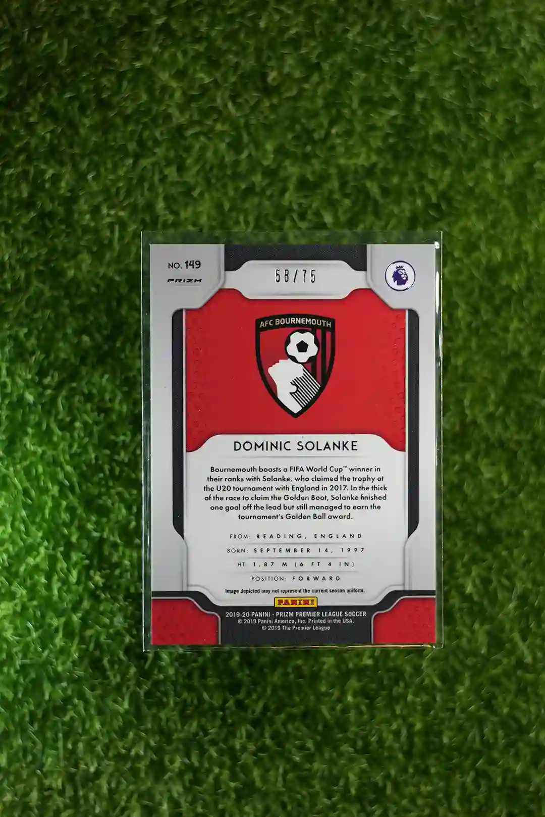 & Free ShippingThis card features Dominic Solanke from the 2019-20 Panini Prizm Premier League Soccer set. It is the highly collectible Purple Prizm parallel, limited to a print run of just 75 copies worldwide.