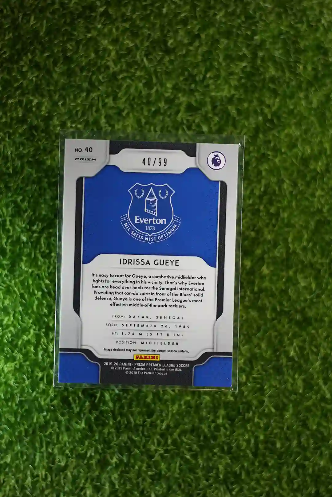 2019-20 Panini Prizm Premier League Soccer Idrissa Gueye serially numbered out of 99.