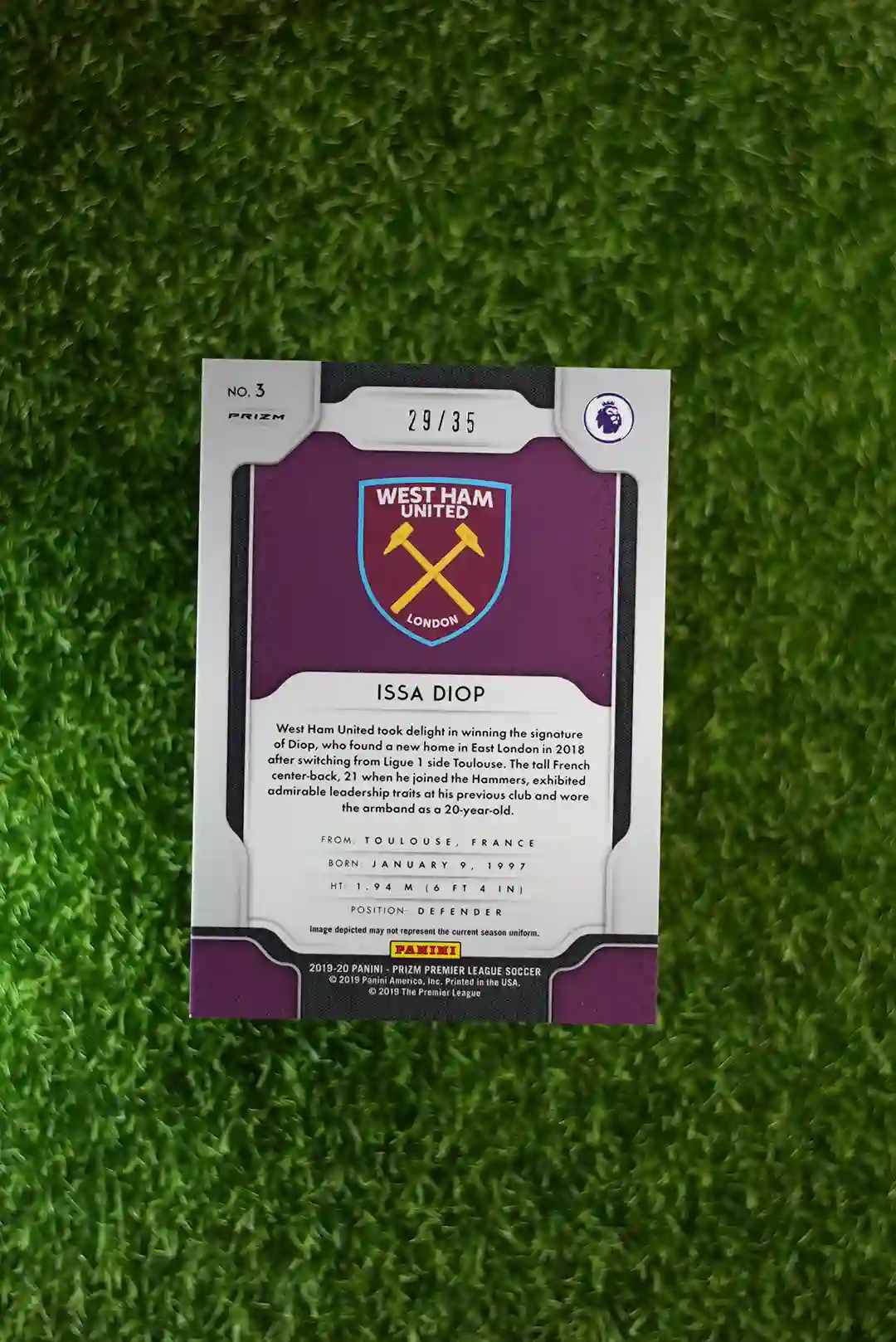 2019-20 Panini Prizm Premier League Soccer Issa Diop Rookie Card, numbered to 35.
