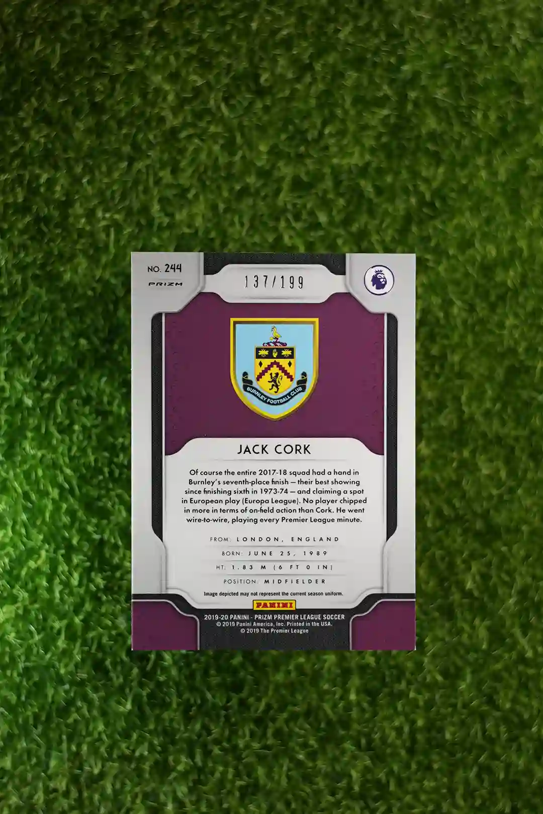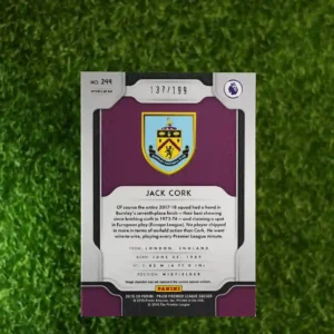 & Free ShippingThis is a 2019-20 Panini Prizm Premier League Soccer card featuring Jack Cork. It is the Blue Prizm parallel, serial numbered to /199.