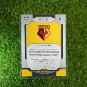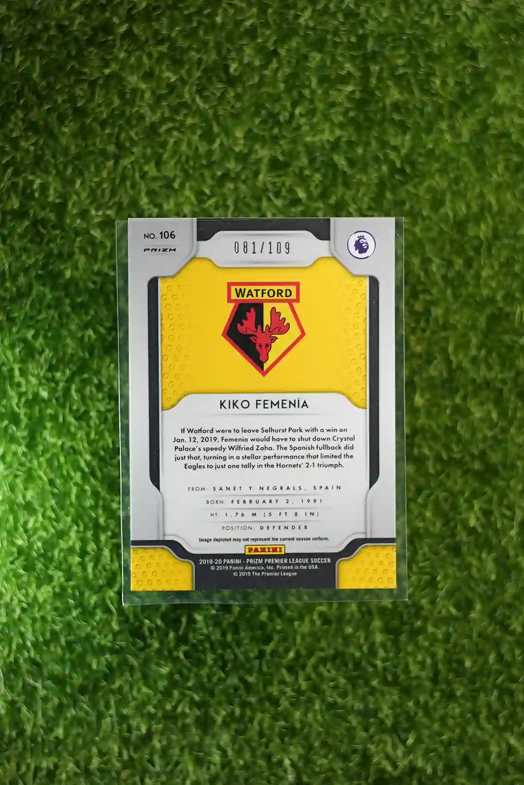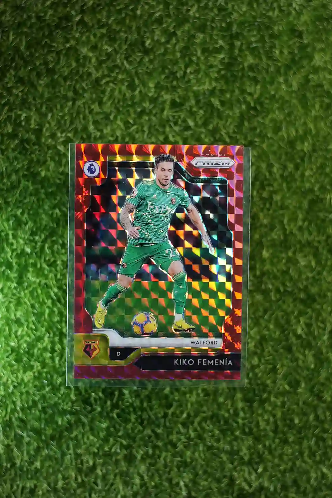 & Free ShippingThis is the 2019-20 Panini Prizm Premier League Soccer Red Prizm card of Kiko Femenía, card number #106, limited to 109 copies.