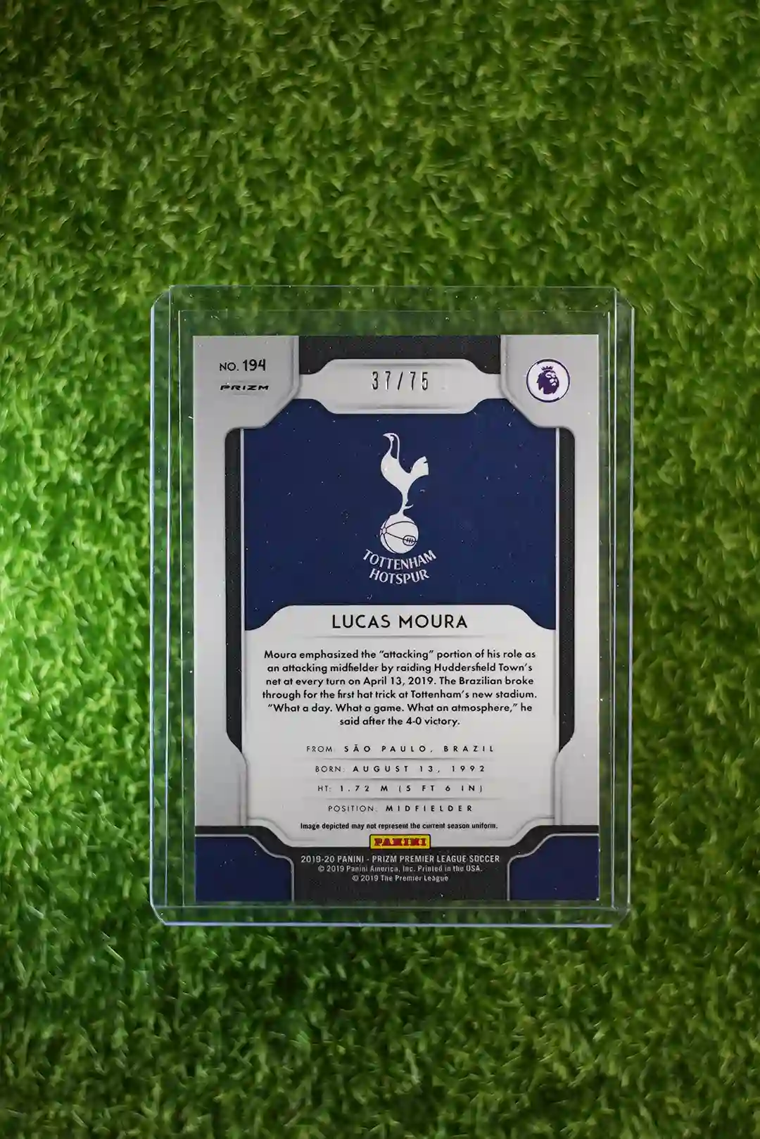 & Free Shipping2019-20 Panini Prizm Premier League Soccer Lucas Moura Blue Prizm, limited to 75 copies.