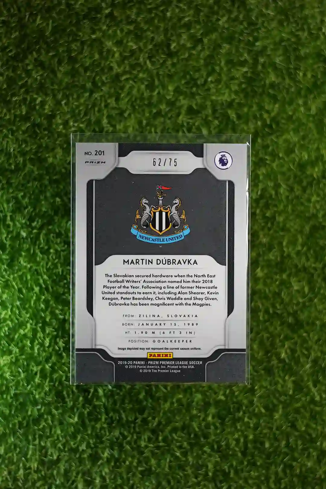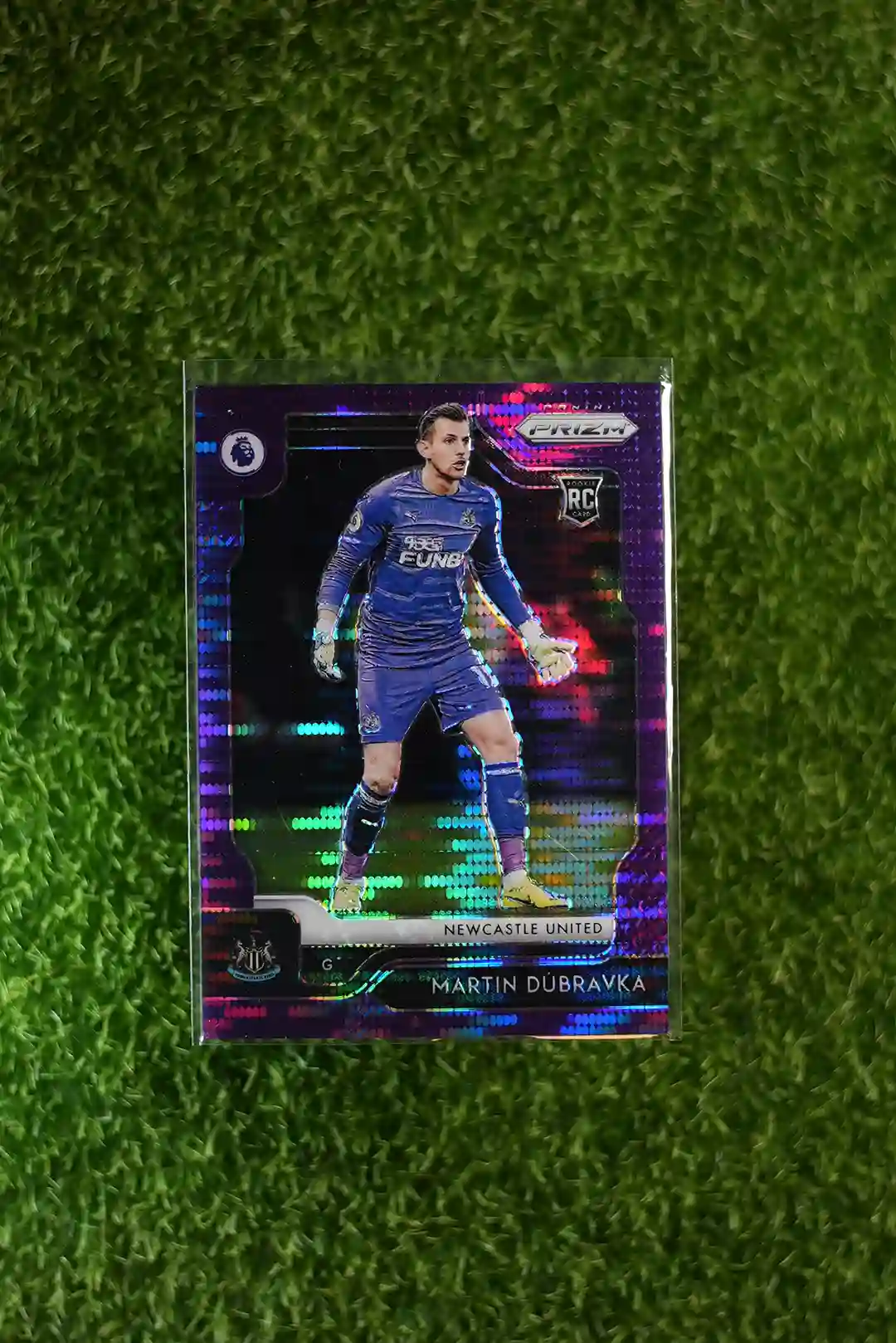 & Free Shipping2019-20 Panini Prizm Premier League Soccer Martin Dubravka Purple Prizm Rookie Card (RC) numbered to 75 copies.