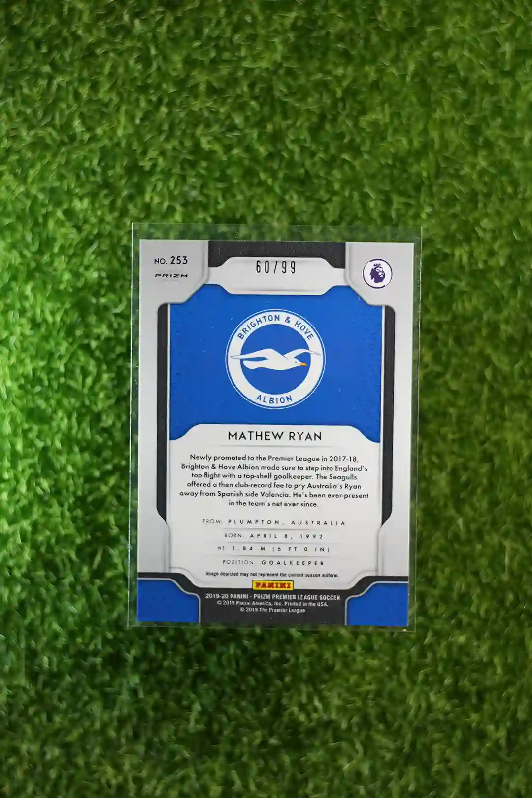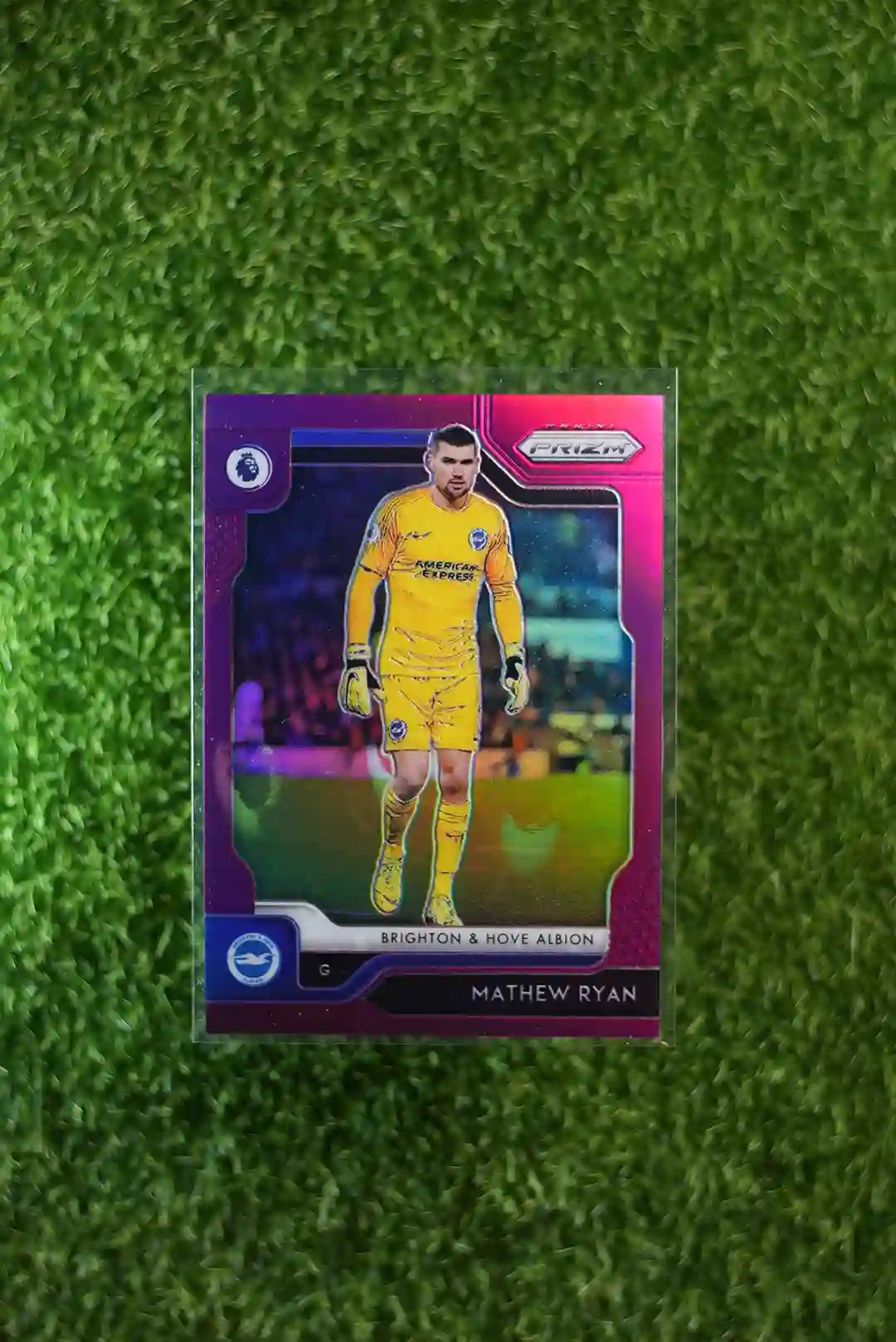 & Free Shipping2019-20 Panini Prizm Premier League Soccer Mathew Ryan Prizm Purple parallel, limited to 99 copies.