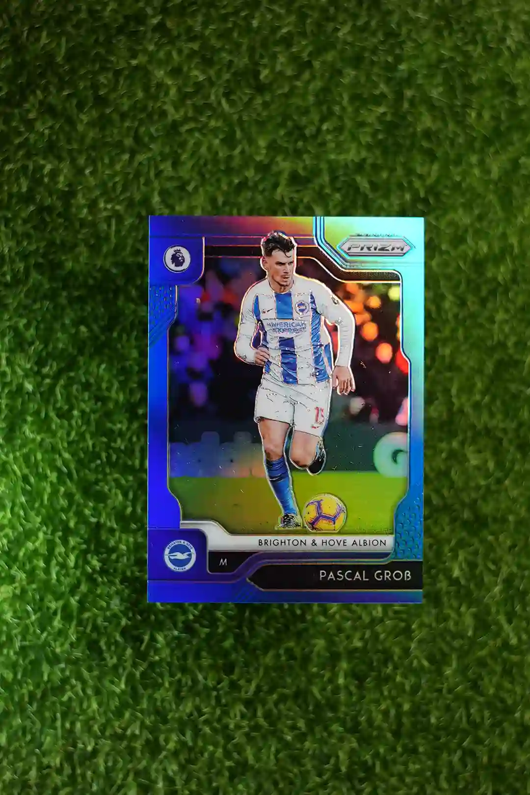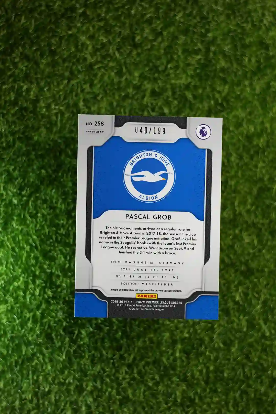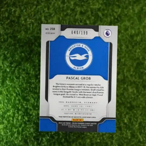 & Free Shipping2019-20 Panini Prizm Premier League Soccer Pascal Grob Blue Prizm #258, limited to 199 copies.