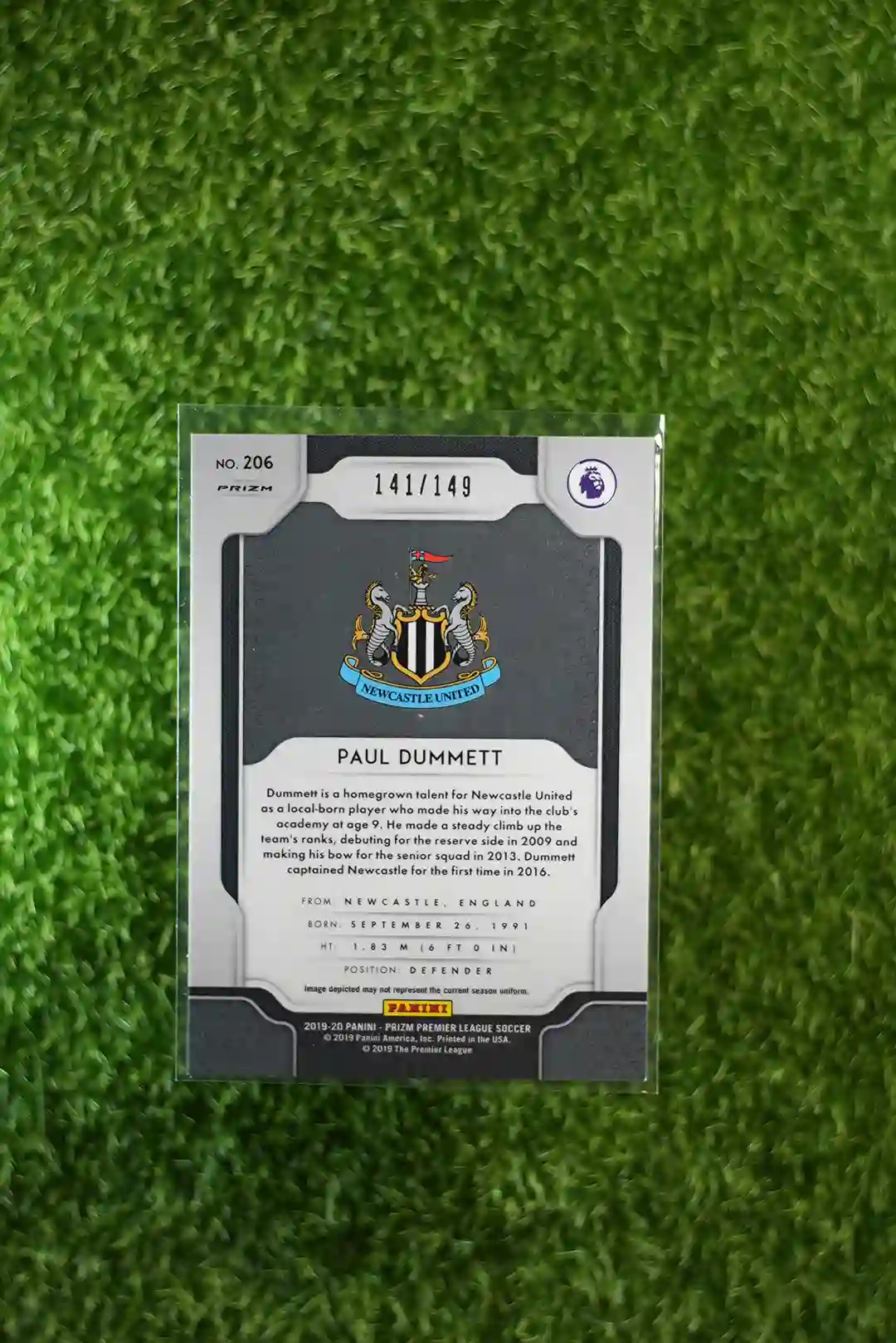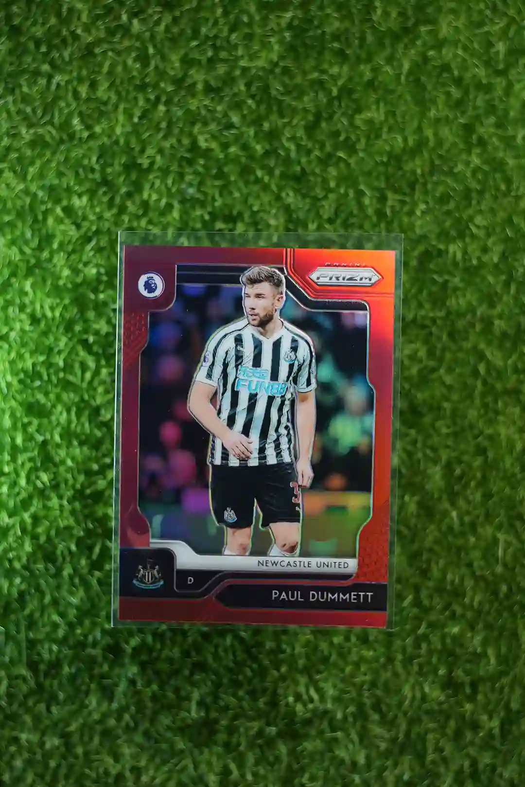& Free Shipping2019-20 Panini Prizm Premier League Soccer Paul Dummett Red Prizm #206, serial numbered to 149 copies.