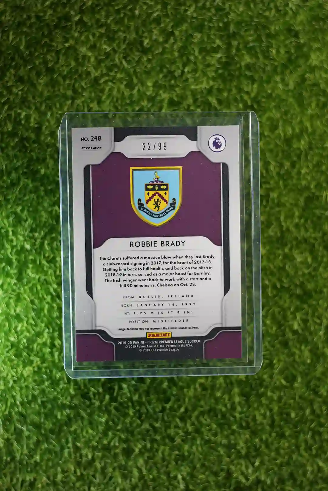 & Free Shipping2019-20 Panini Prizm Premier League Soccer Robbie Brady Pink Prizm, limited to 99 copies, #248.