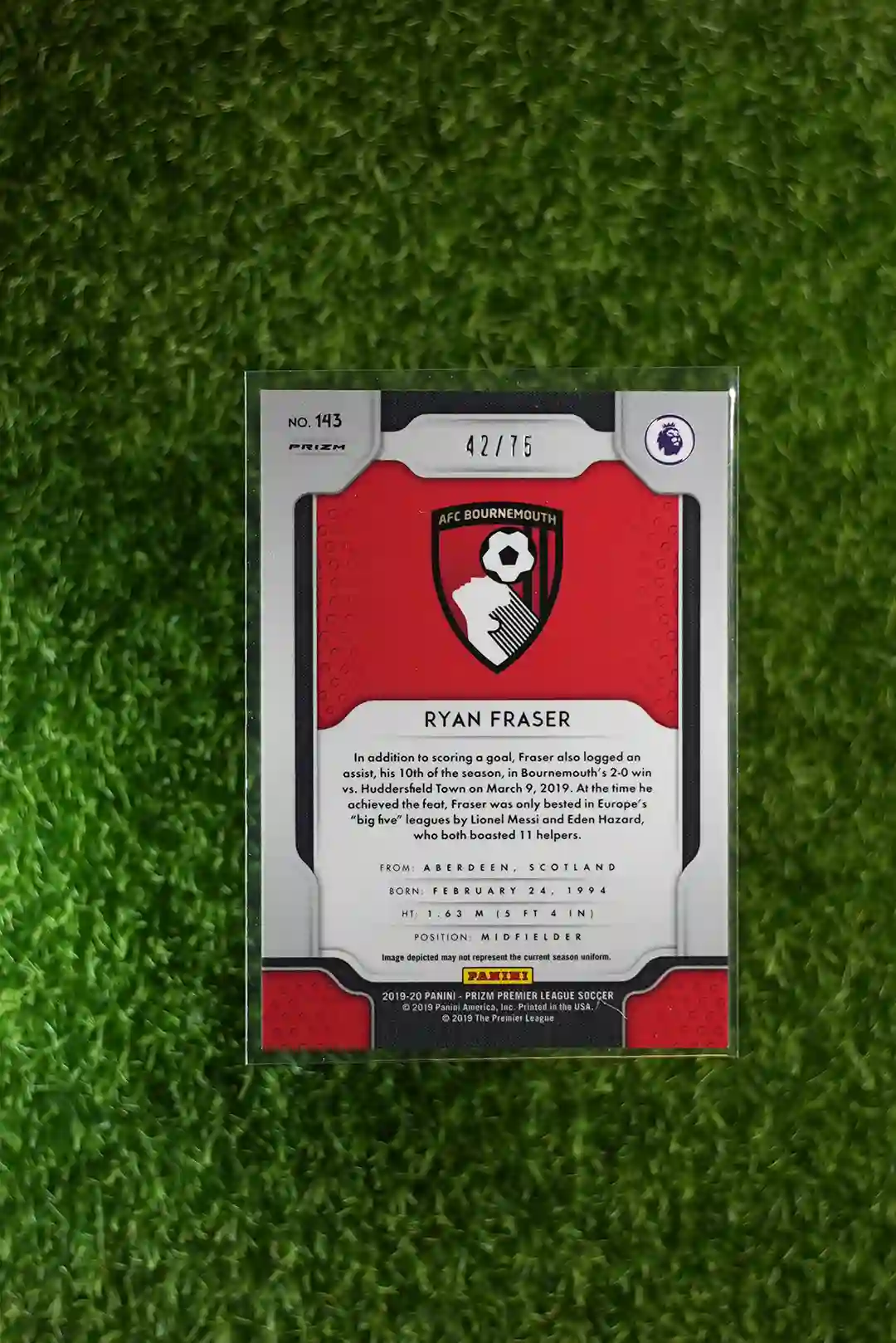 & Free Shipping2019-20 Panini Prizm Premier League Soccer Ryan Fraser Purple Prizm, serially numbered to 75.