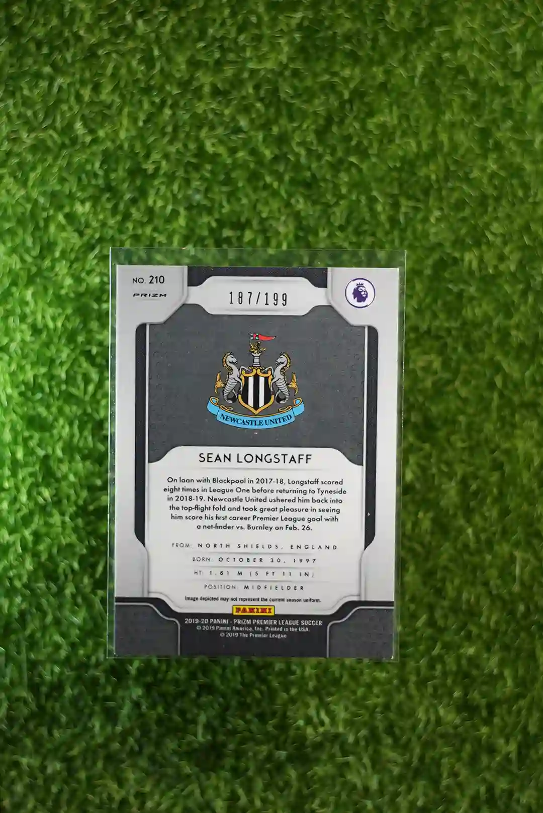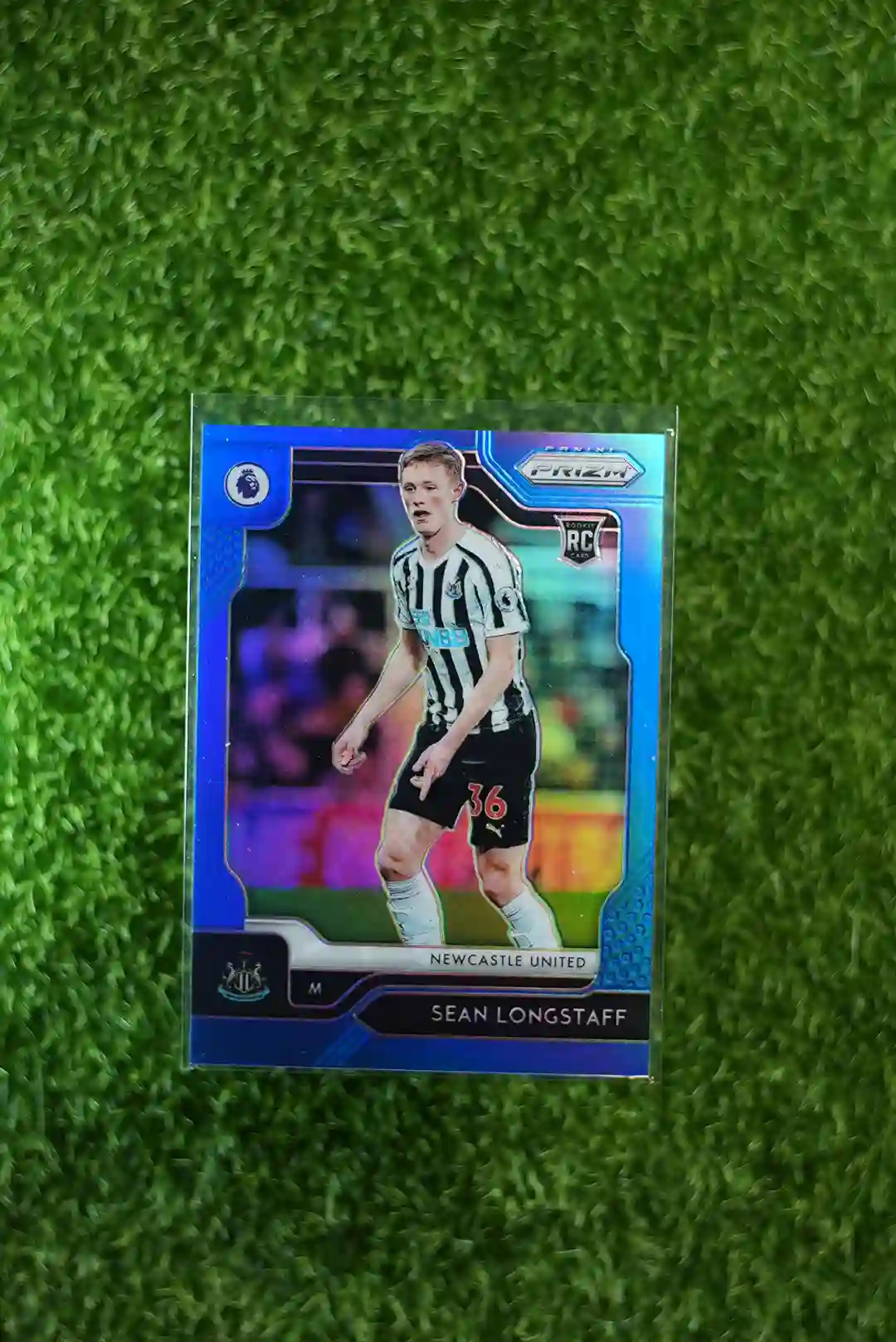& Free Shipping2019-20 Panini Prizm Premier League Soccer Sean Longstaff Blue Prizm Rookie Card RC #210, short print and individually numbered to 199.
