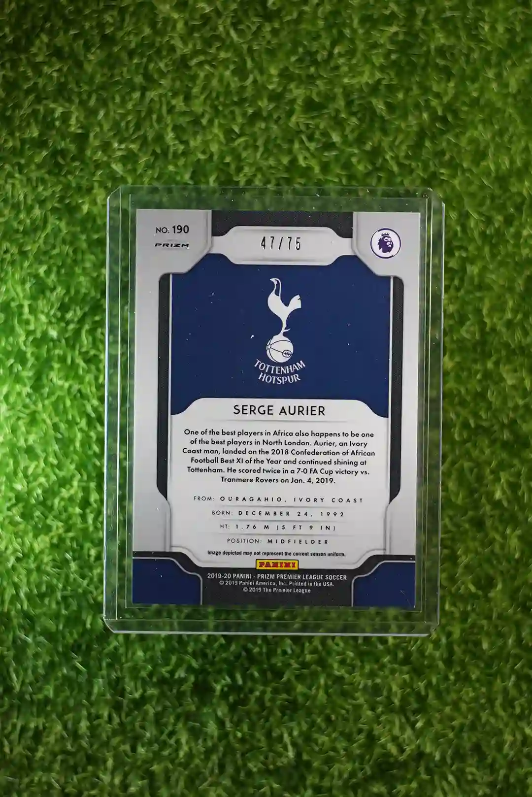 & Free Shipping2019-20 Panini Prizm Premier League Soccer Serge Aurier Blue Prizm numbered to 75.