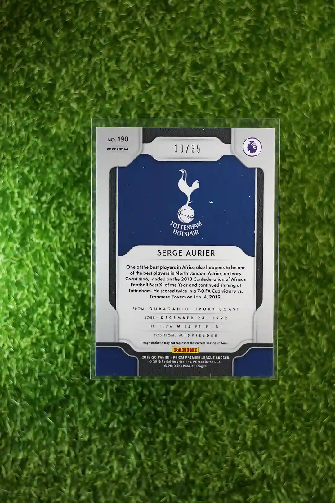 2019-20 Panini Prizm Premier League Soccer Serge Aurier Green Prizm, limited to only 35 copies.