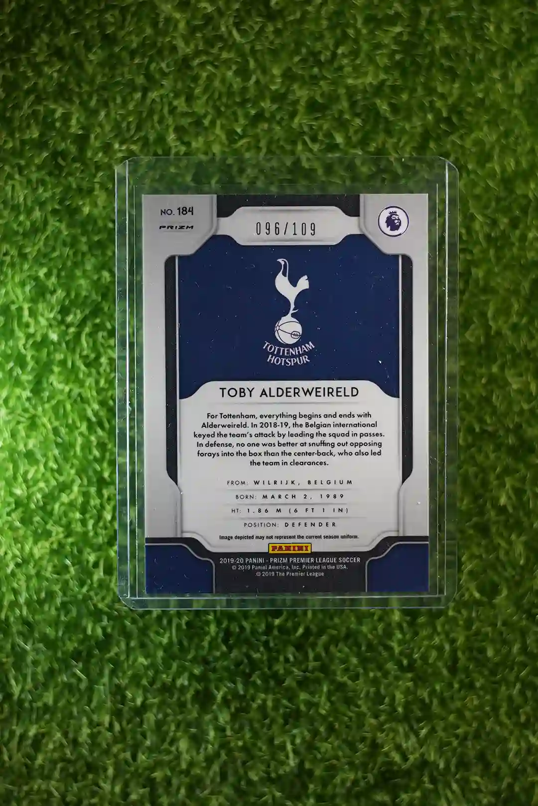 & Free Shipping2019-20 Panini Prizm Premier League Soccer Toby Alderweireld Red Prizm #184, serially numbered to 109.