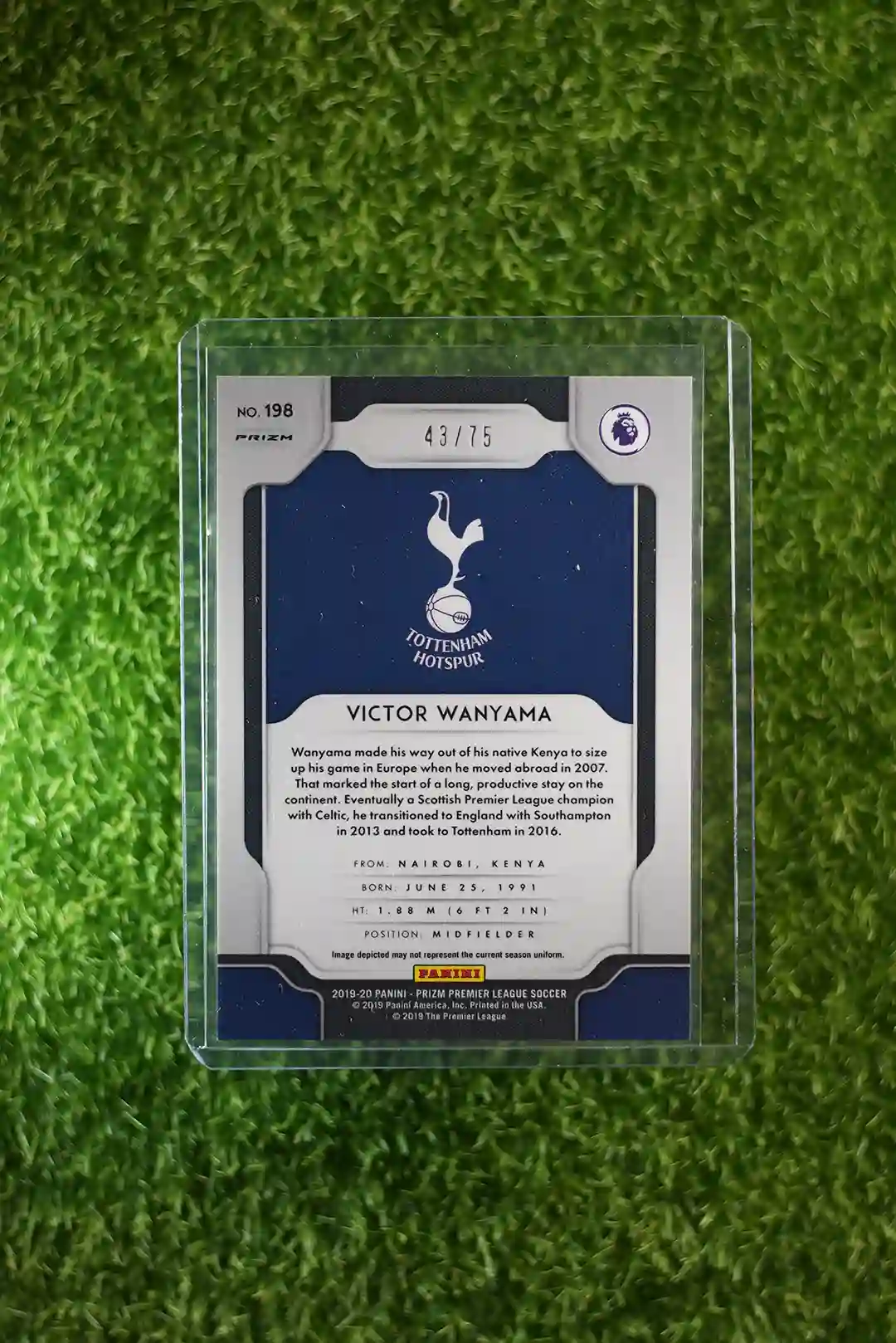 & Free Shipping2019-20 Panini Prizm Premier League Soccer Victor Wanyama Blue Prizm, serial numbered out of 75.