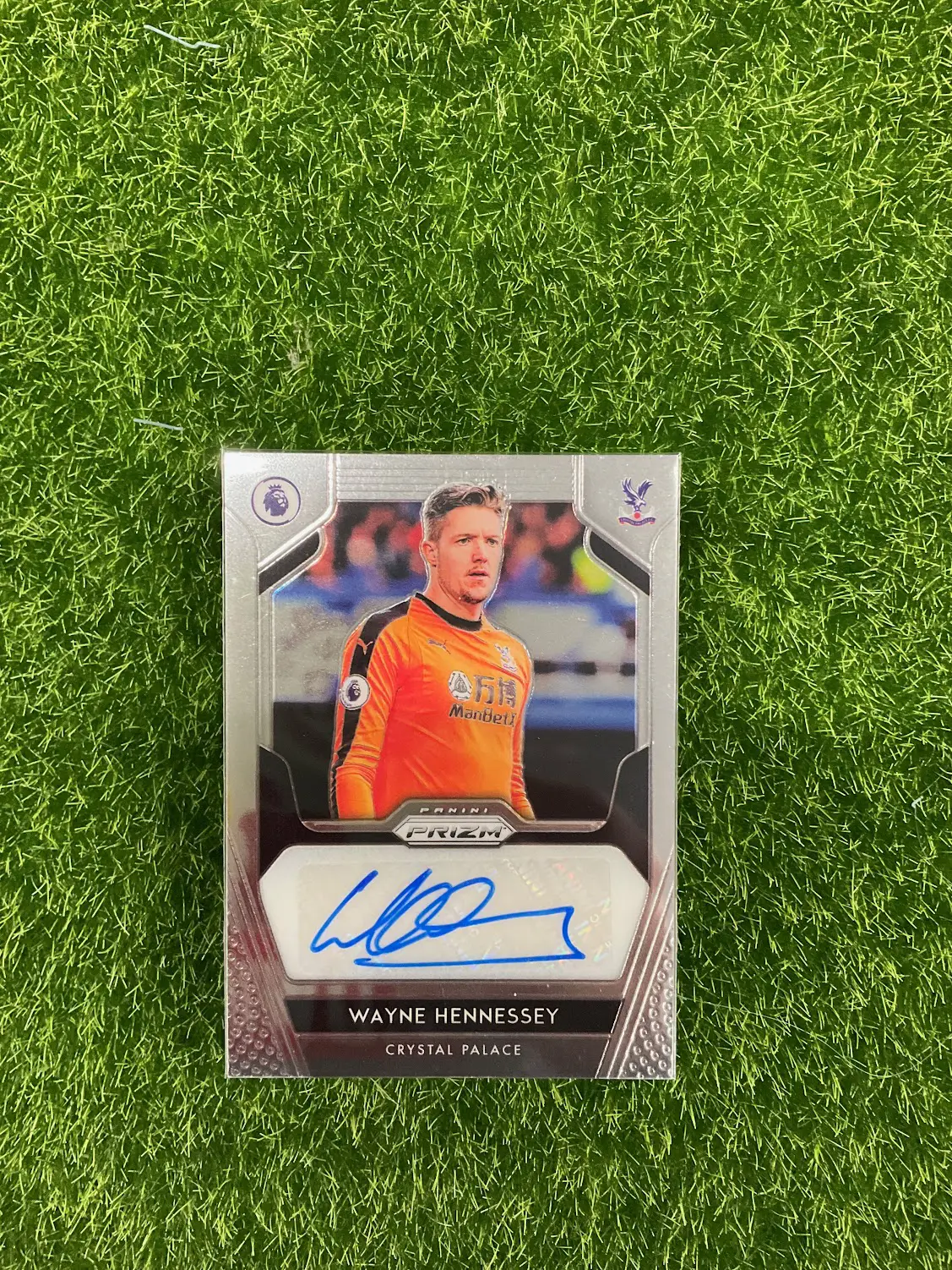 Own a certified autograph from the veteran goalkeeper, Wayne Hennessey. This is the 2019-20 Panini Prizm autographed card. The Prizm brand is iconic, and this card features a signature from the Welsh international. A great and affordable autographed card.