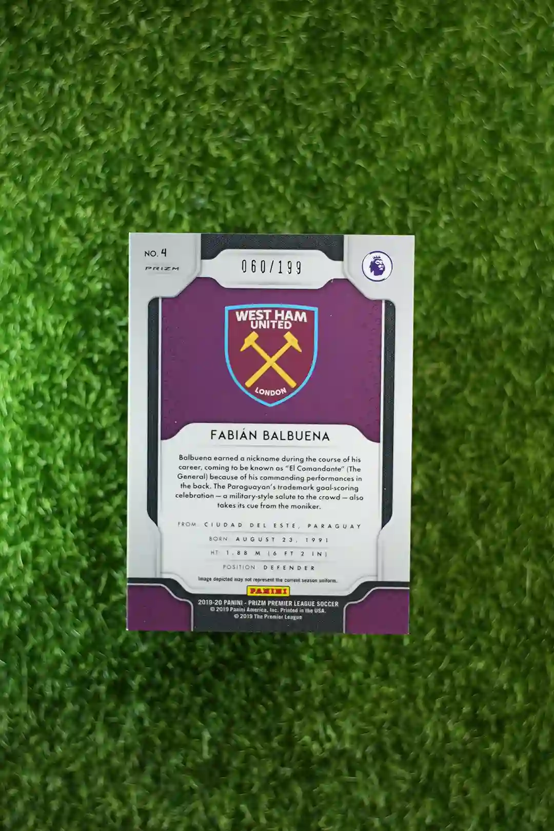 2019-20 Prizm Fabian Balbuena Blue Prizm RC, serial-numbered to 199 copies.