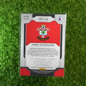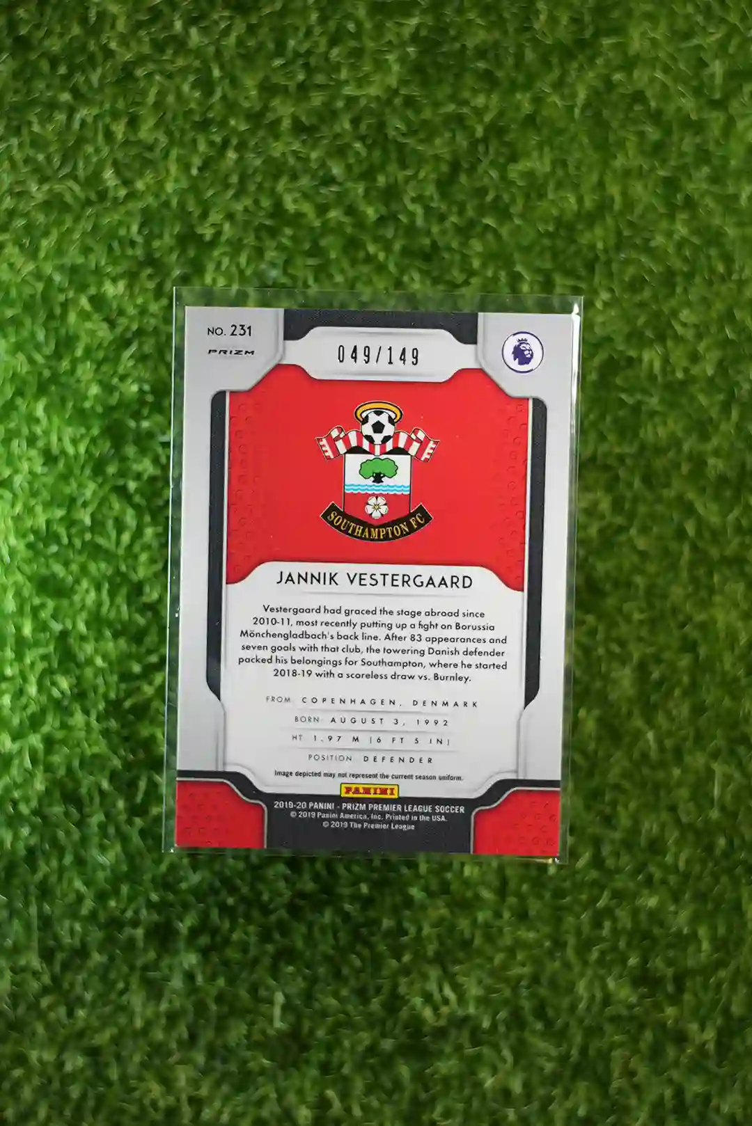 This 2019-20 Prizm card features Jannik Vestergaard. It is part of a limited print run of 149.