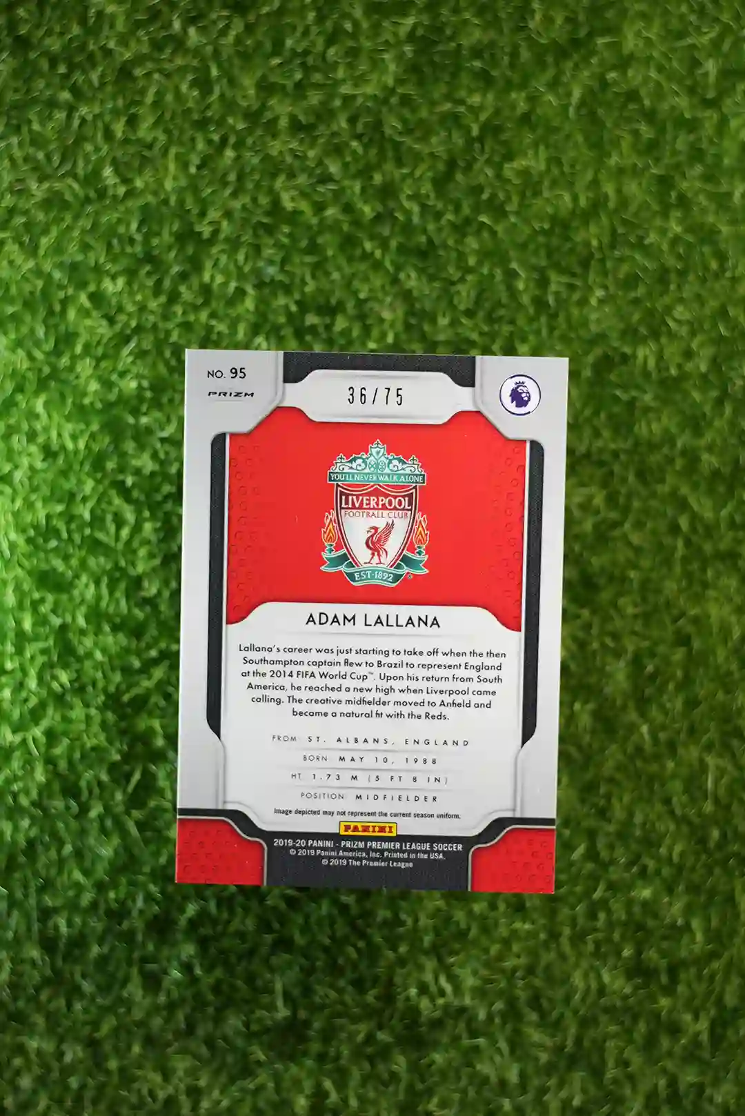 & Free ShippingAdam Lallana 2019-20 Prizm Premier League Soccer Purple Prizm parallel, serial numbered to 75 copies.