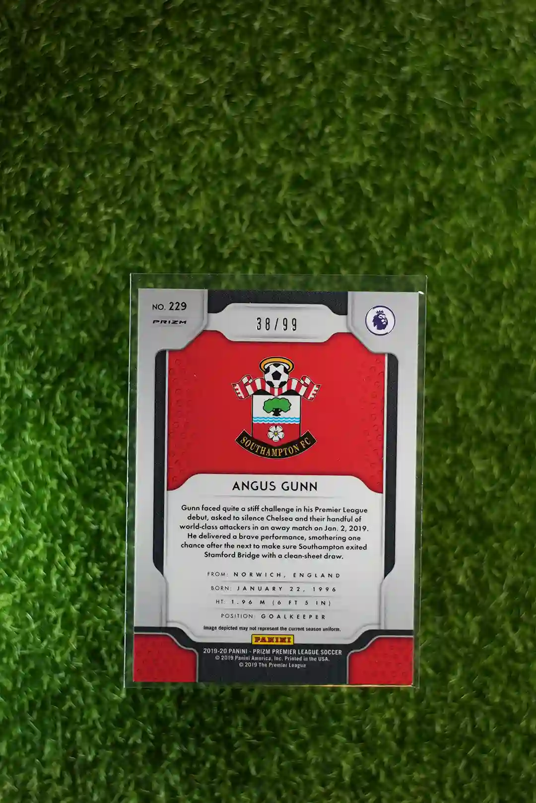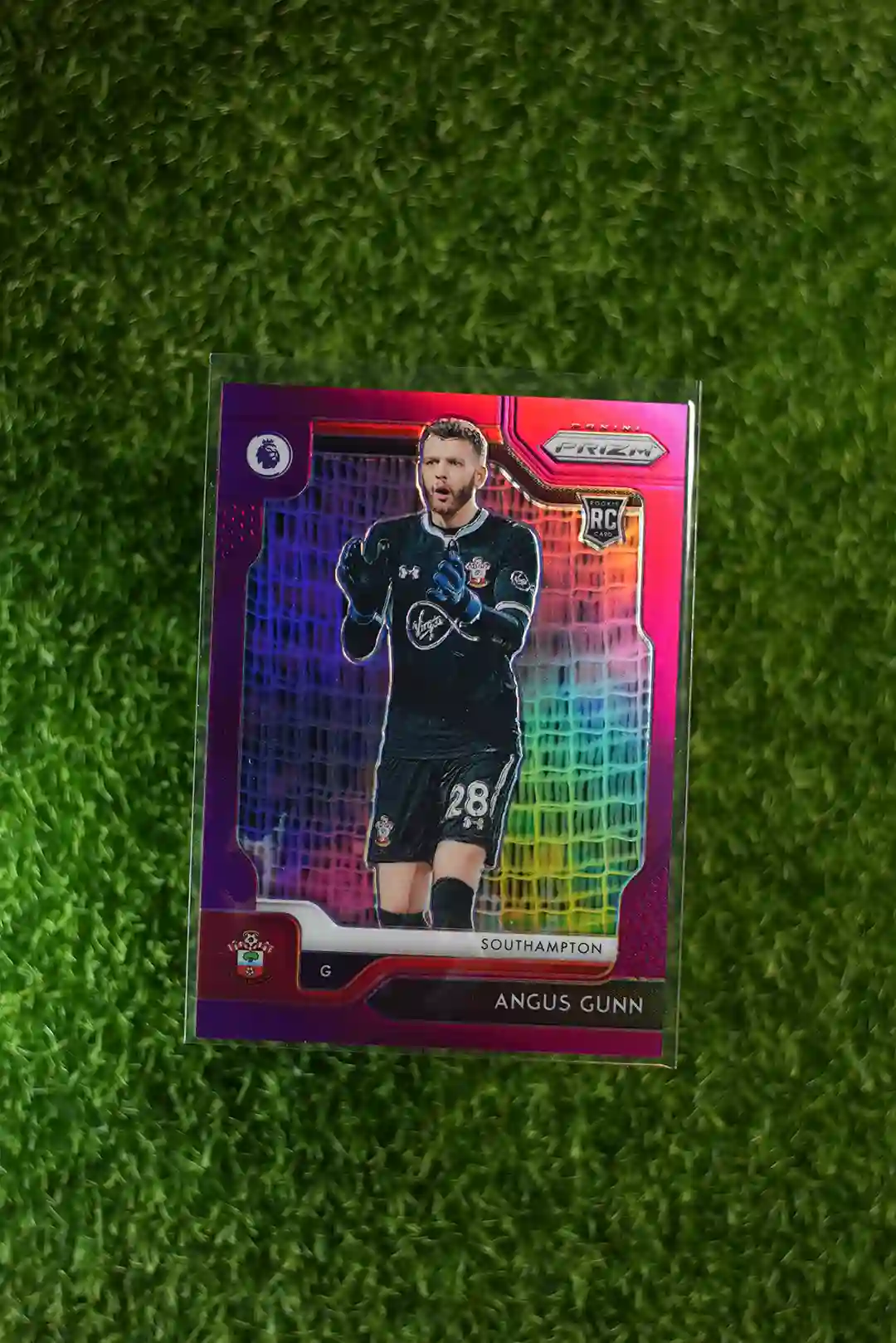 2019-20 Prizm Premier League Soccer Angus Gunn Purple Prizm RC, numbered to 99.