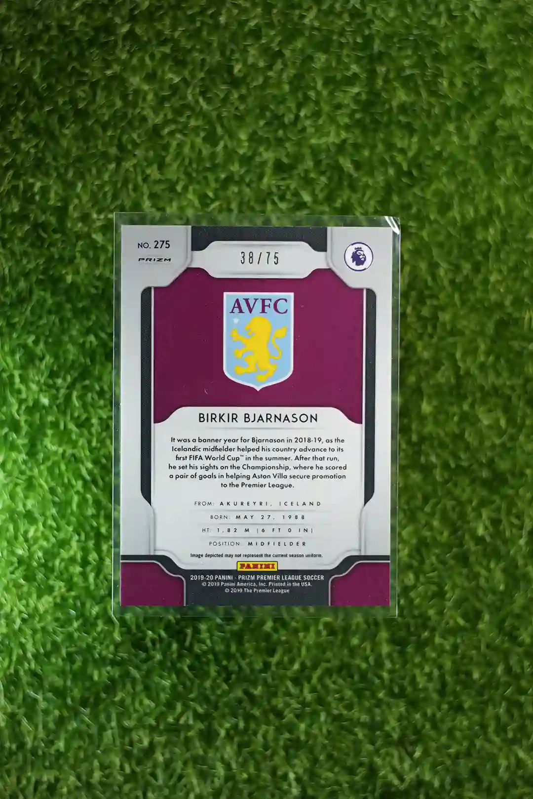 & Free Shipping2019-20 Prizm Premier League Soccer Birkir Bjarnason Base card #275, limited to 75 copies.