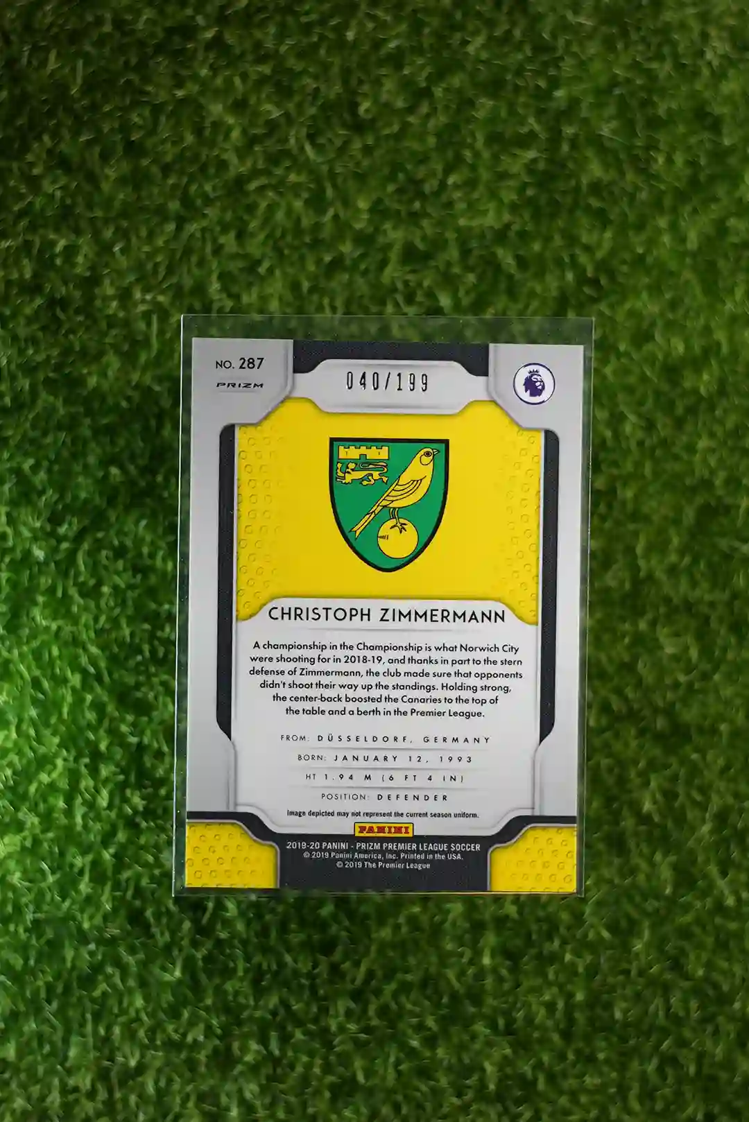 & Free Shipping2019-20 Prizm Premier League Soccer Christoph Zimmermann Blue Prizm Rookie Card, serial numbered to 199.
