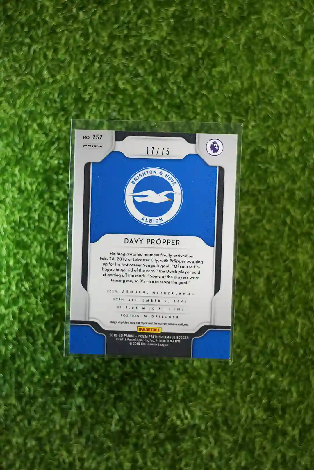 & Free Shipping2019-20 Prizm Premier League Soccer Davy Propper Purple Prizm Disco parallel, serial numbered out of 75.