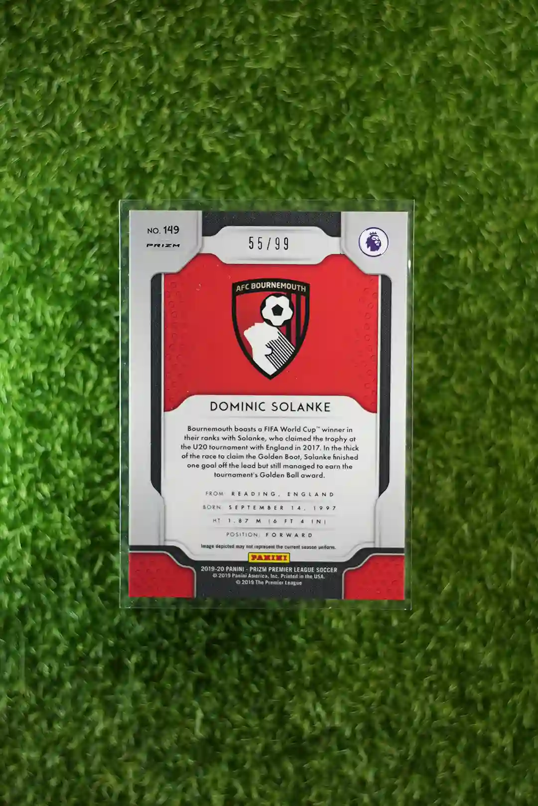 & Free Shipping2019-20 Prizm Premier League Soccer Dominic Solanke Purple Prizm Rookie Card, numbered to 99.