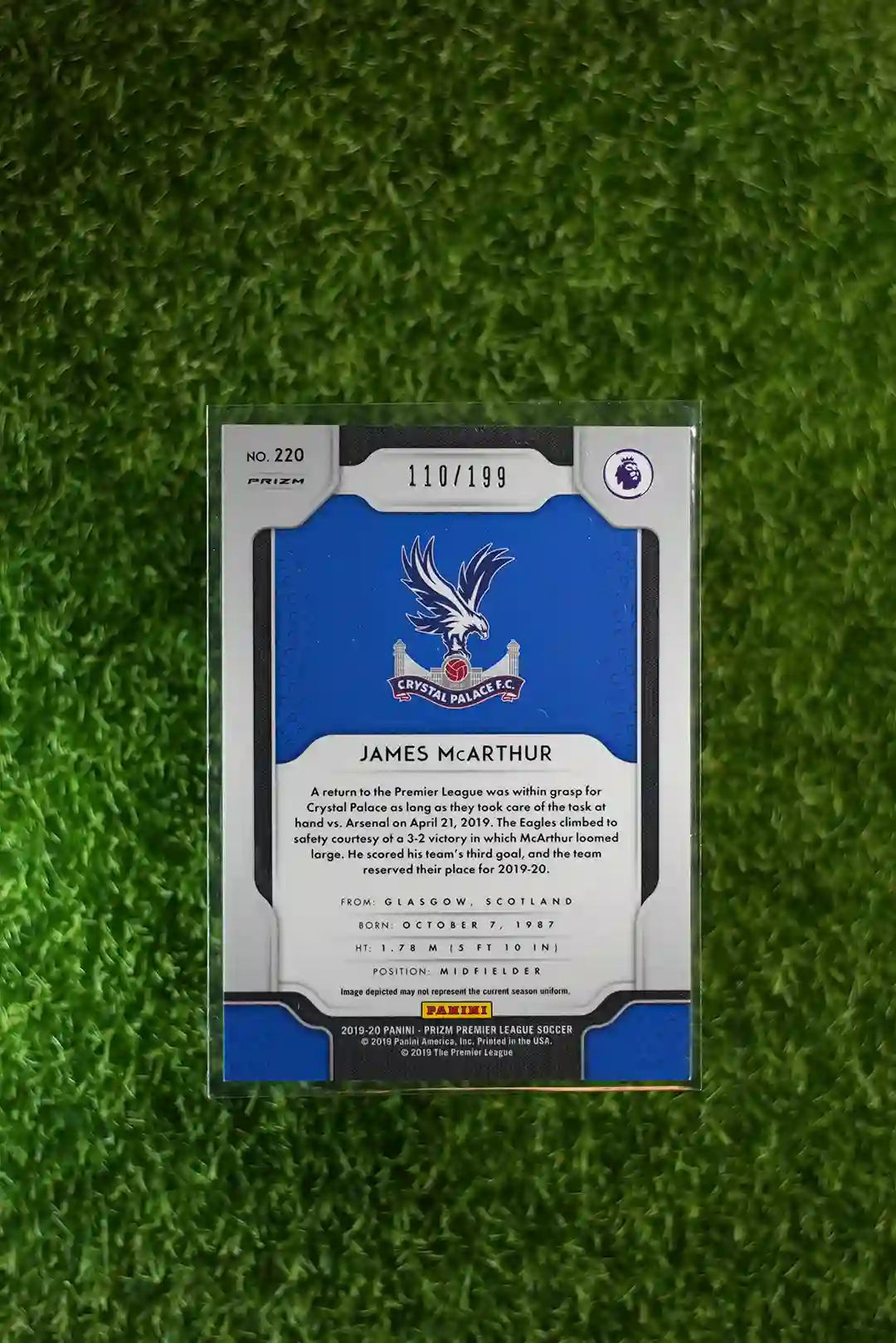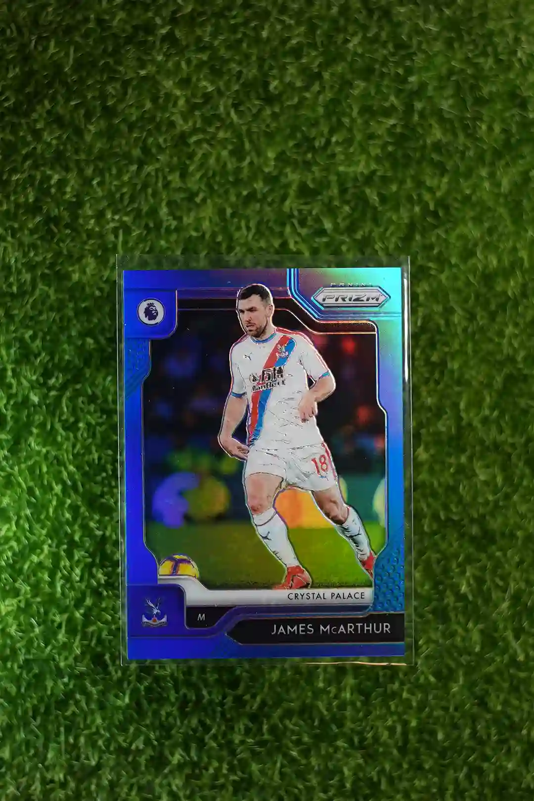 2019-20 Prizm Premier League Soccer James McArthur Blue Prizm, numbered out of 199.