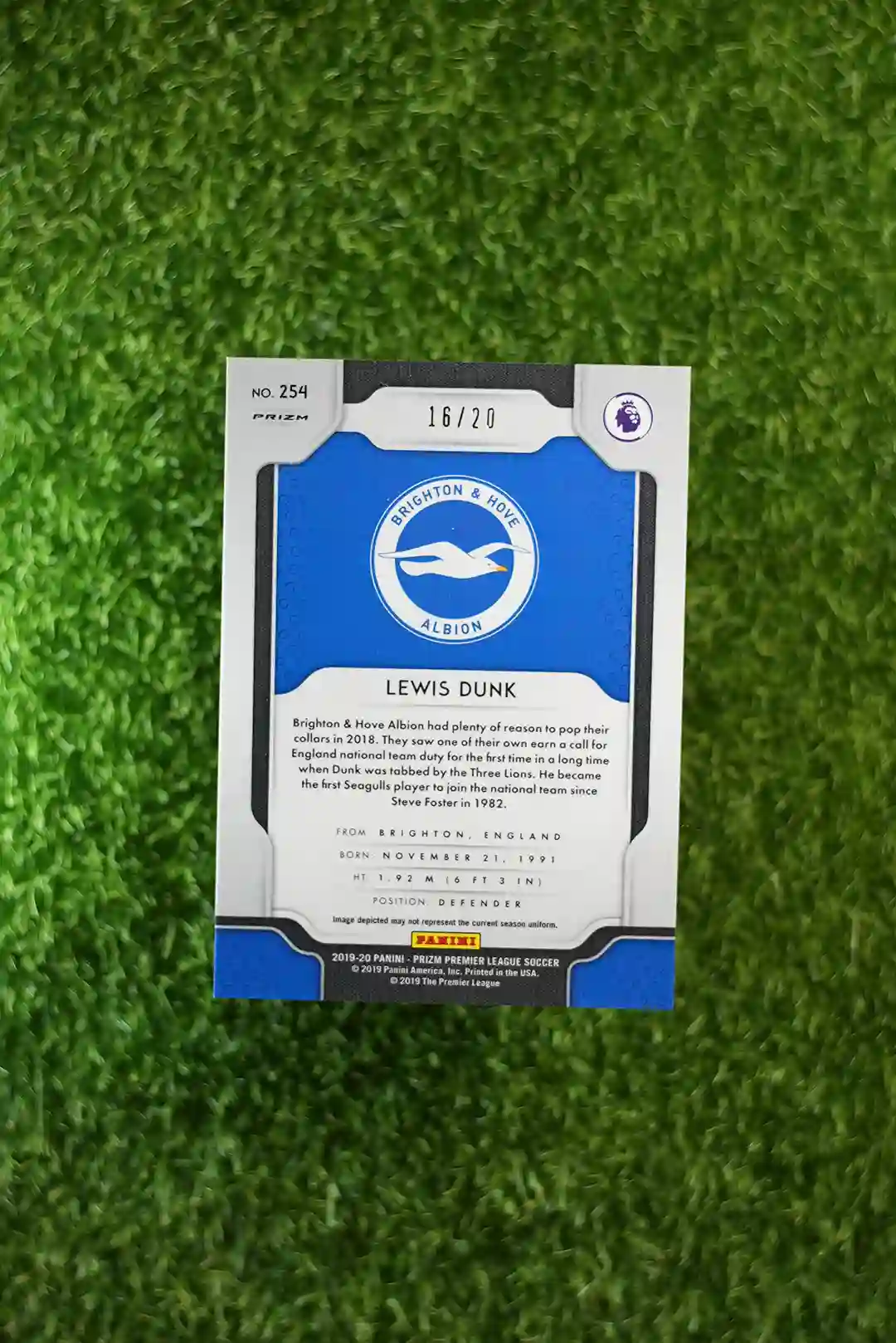 & Free Shipping2019-20 Prizm Premier League Soccer Lewis Dunk Pink Prizm Disco parallel, serial numbered to /20.