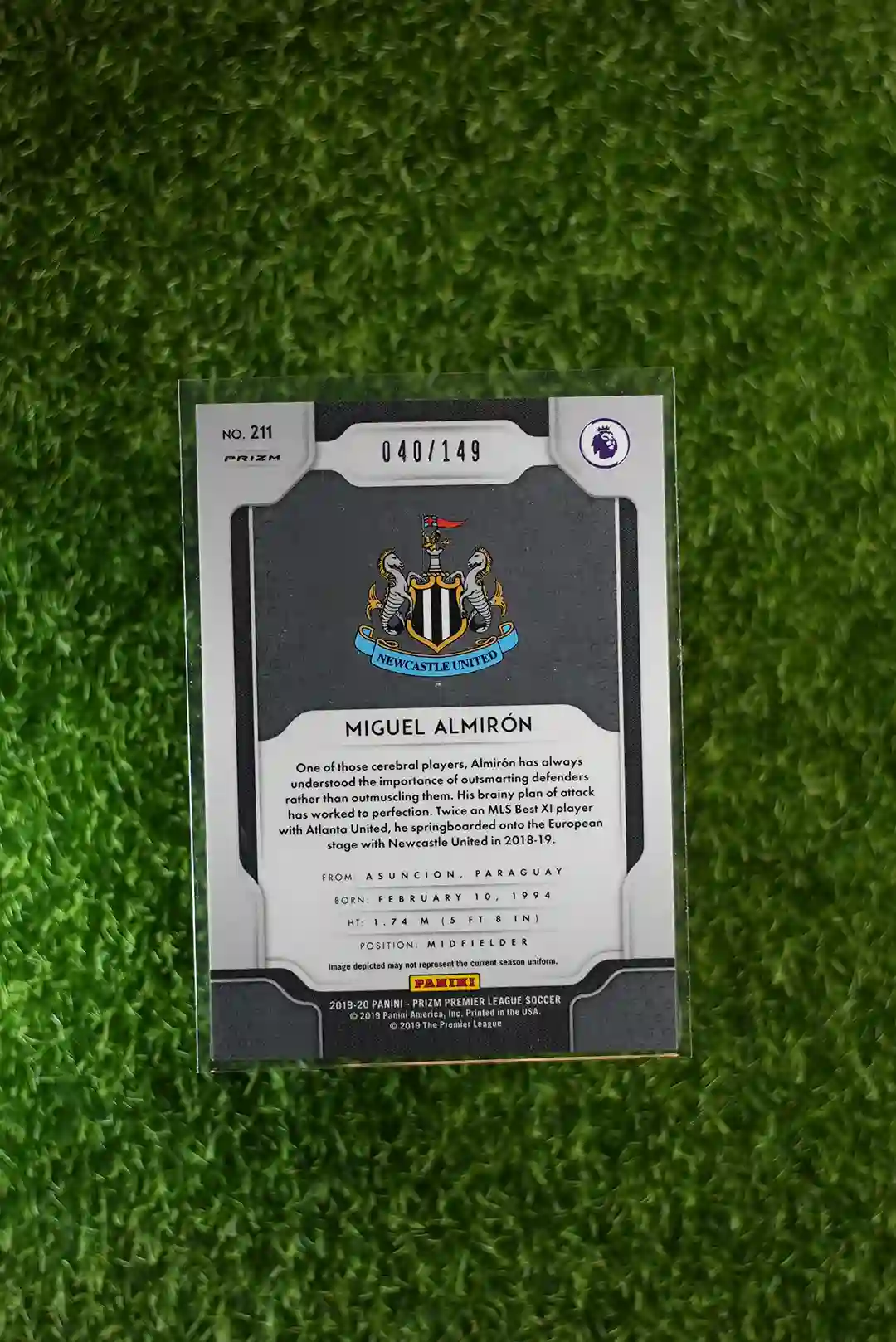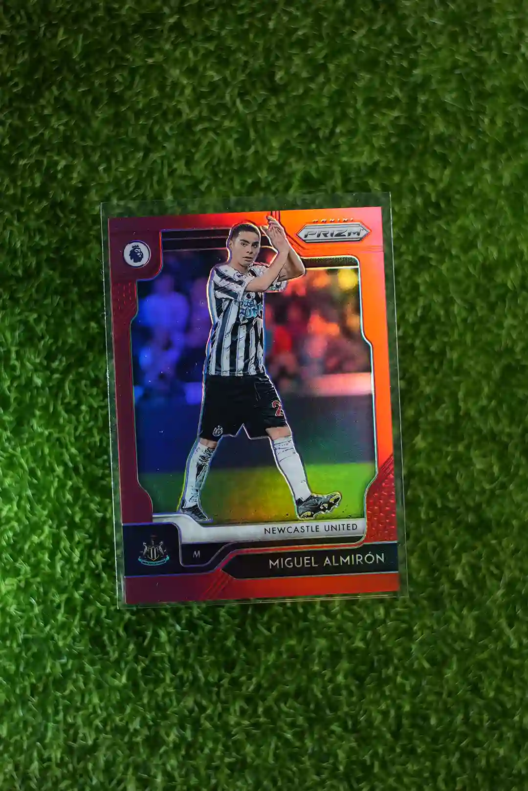 2019-20 Prizm Premier League Soccer Miguel Almirón Red Prizm, numbered to 149.