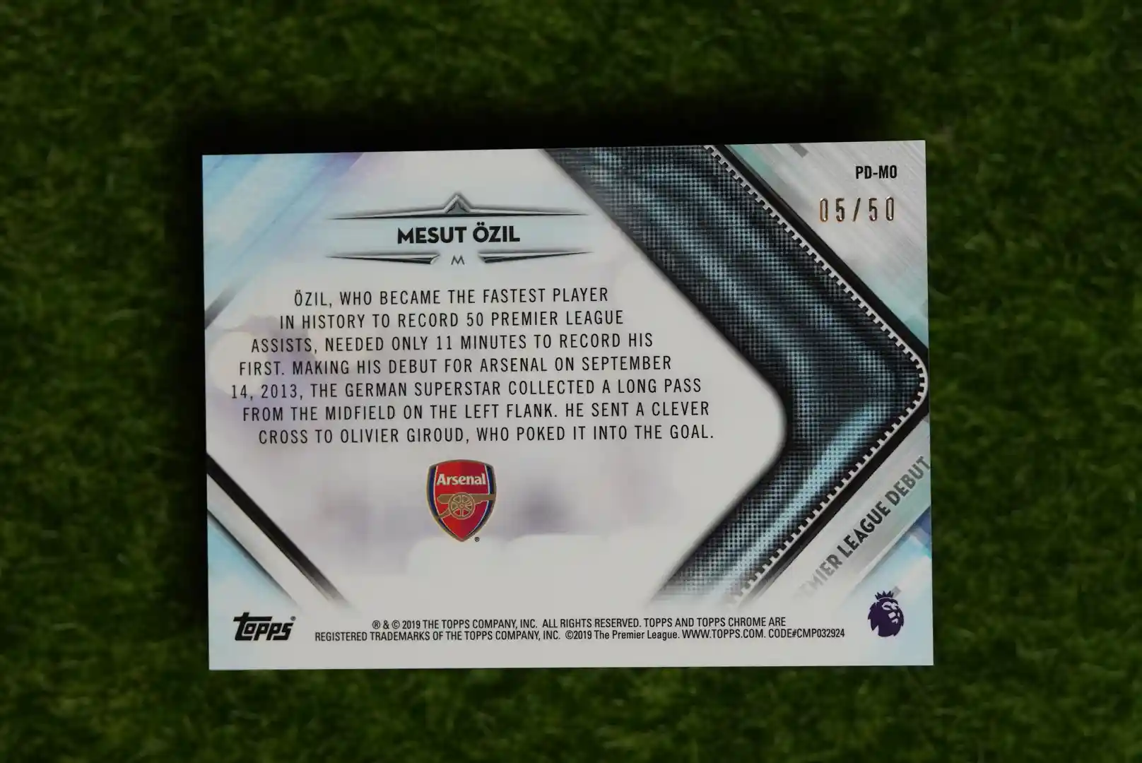 2019-20 Topps Chrome Premier League Mesut Özil Premier League Debut Gold Refractor 05/50