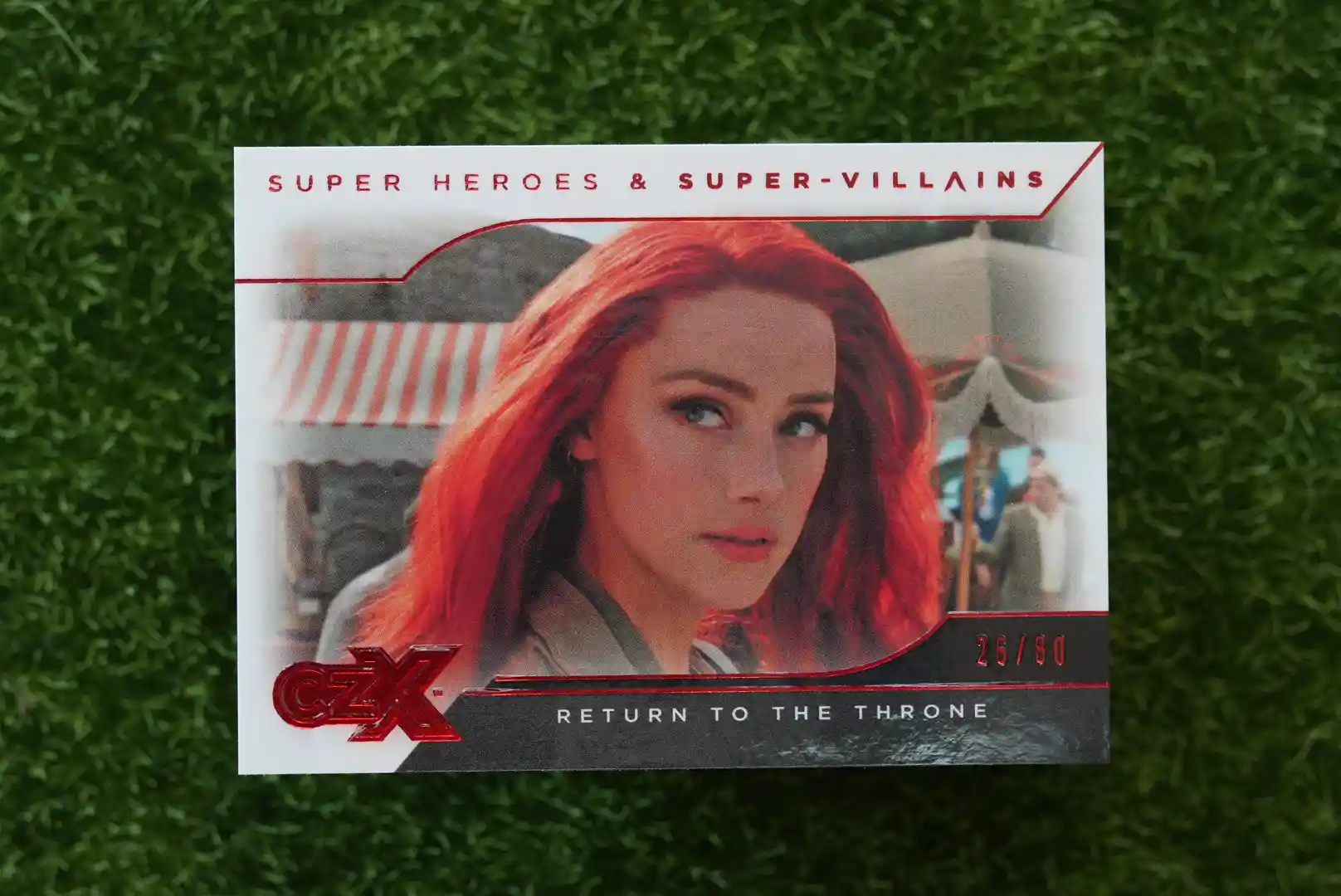 A premium card from the world of DC Comics! This is the 2019 Cryptozoic CZ-X Super Heroes & Super-Villains Aquaman “Return to the Throne” Red Parallel, numbered to 90. The CZ-X brand is a high-end collection that celebrates the DC movie universe, known for its thick, premium card stock and beautiful designs. This card captures a key moment from the “Aquaman” movie. The Red parallel adds a nice touch of color and rarity. For fans of the DC Extended Universe and collectors of high-quality, non-sport cards, this is a fantastic and limited collectible.