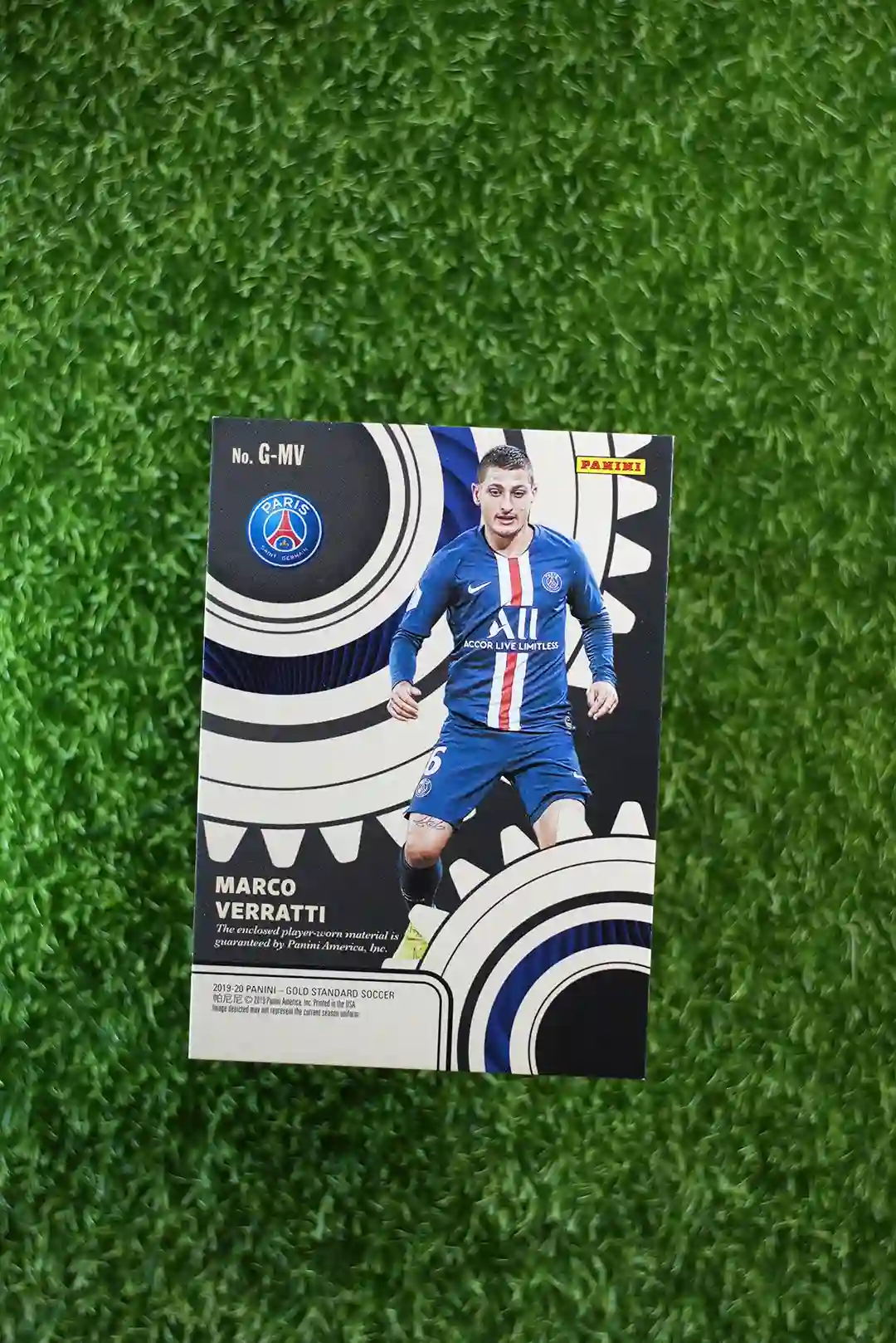 & Free ShippingThis is the 2019 Gold Standard Marco Verratti Gear trading card. This card features Marco Verratti and is part of the ‘Gear’ insert set, which typically includes player-worn or player-used memorabilia.