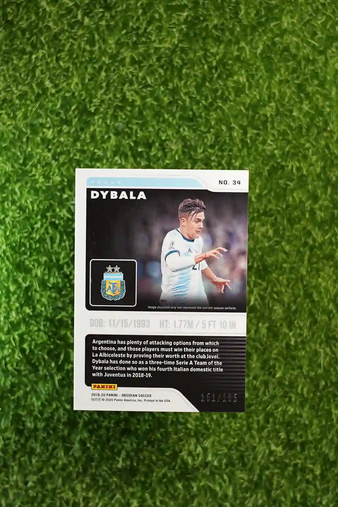 & Free Shipping2019 Panini Obsidian Paulo Dybala Base Card, limited to a print run of 299.