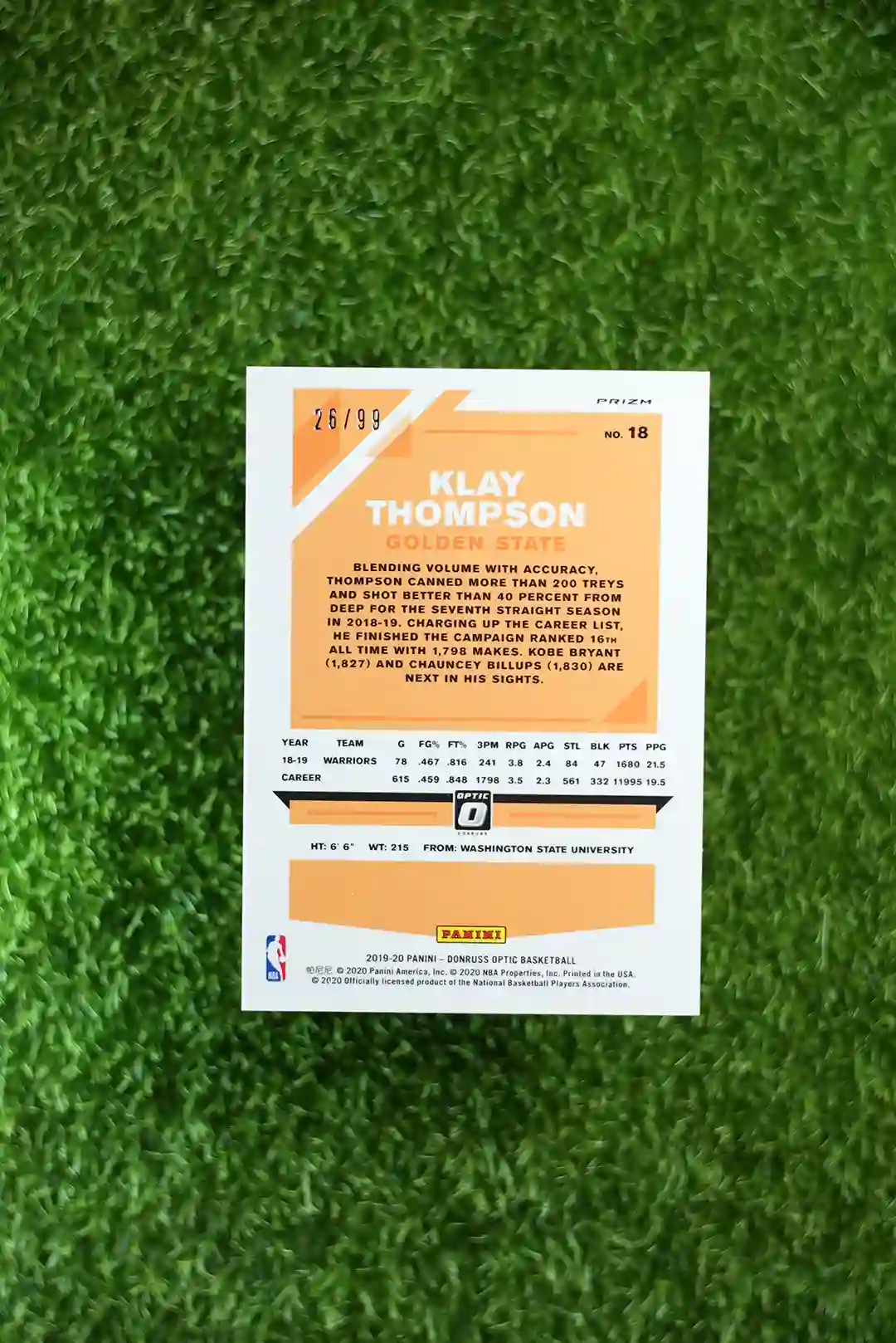 & Free ShippingA highly desirable 2019 Panini Donruss Optic Basketball Red Prizm parallel card featuring Klay Thompson. This vibrant card is part of a limited print run, numbered out of just 99 copies.