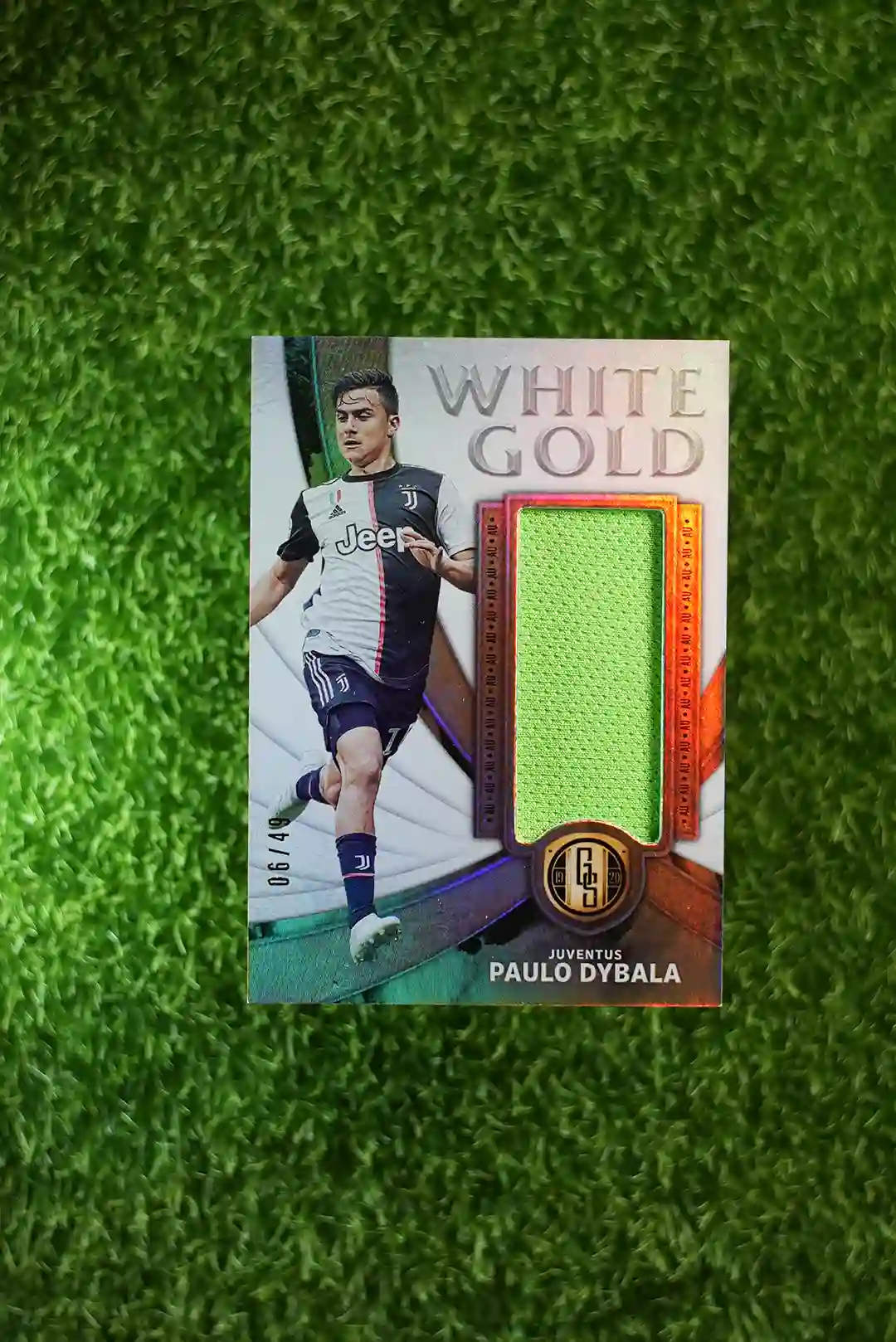 & Free Shipping2019 Panini Gold Standard Soccer Paulo Dybala White Gold Relic, limited to 49 copies.