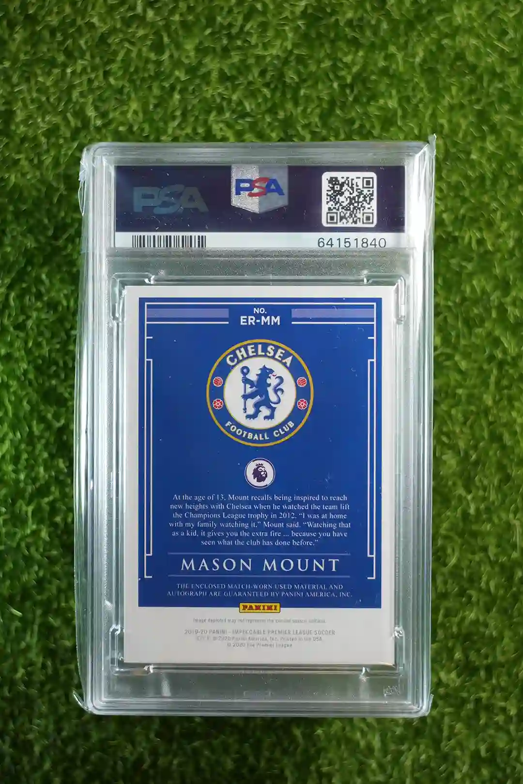 2019 Panini Impeccable Soccer Mason Mount Elegance Rookie, Patch, Auto, Gold 04/10, PSA 10