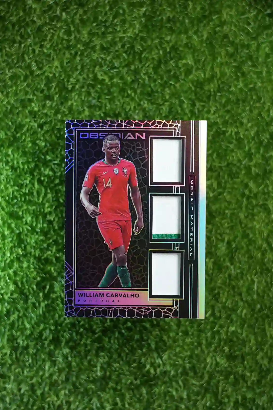 & Free Shipping2019 Panini Obsidian Soccer William Carvalho Mosaic Material card, serial numbered out of 100.
