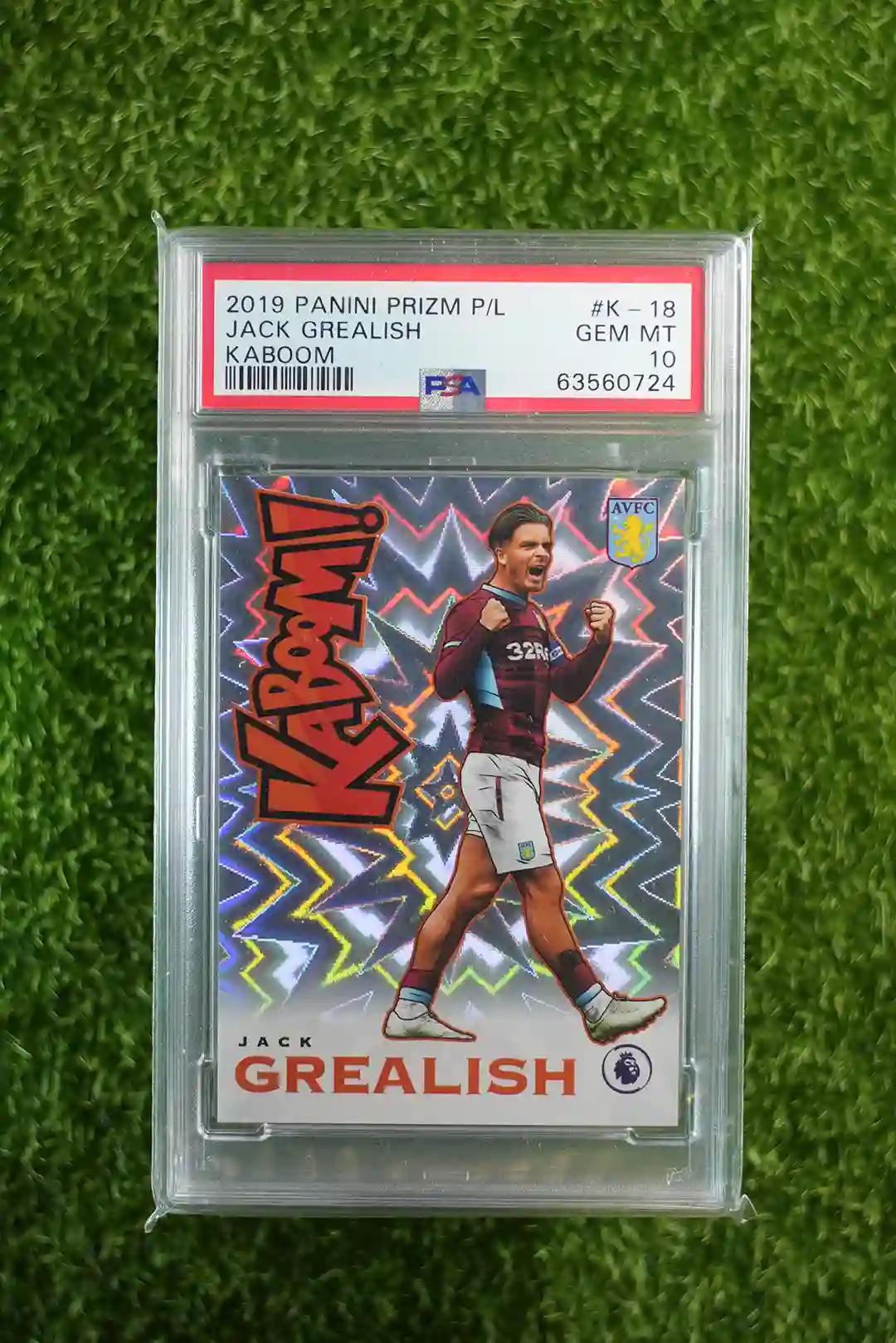& Free ShippingThis highly collectible 2019 Panini Prizm Kaboom trading card features football sensation Jack Grealish, professionally graded a Gem Mint PSA 10. Kaboom inserts are renowned for their vibrant artwork and rarity.