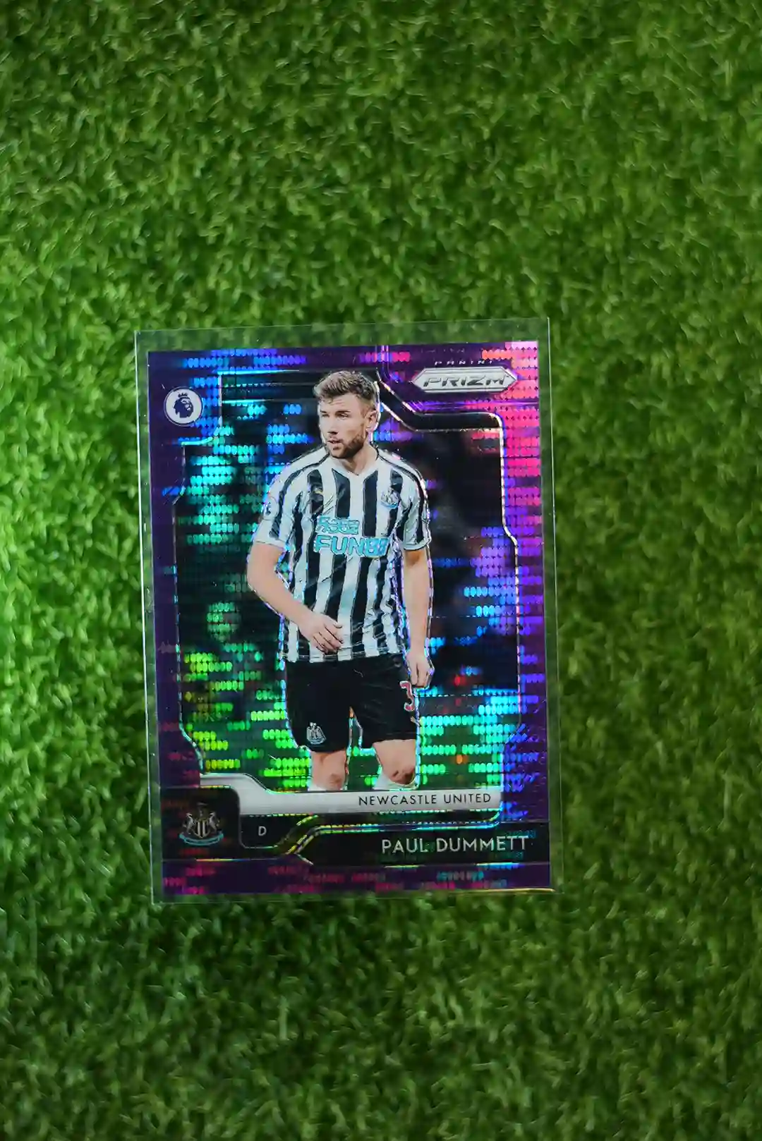 & Free ShippingA 2019 Panini Prizm Premier League Soccer Paul Dummett Purple Prizm Parallel card, limited to 75 copies.