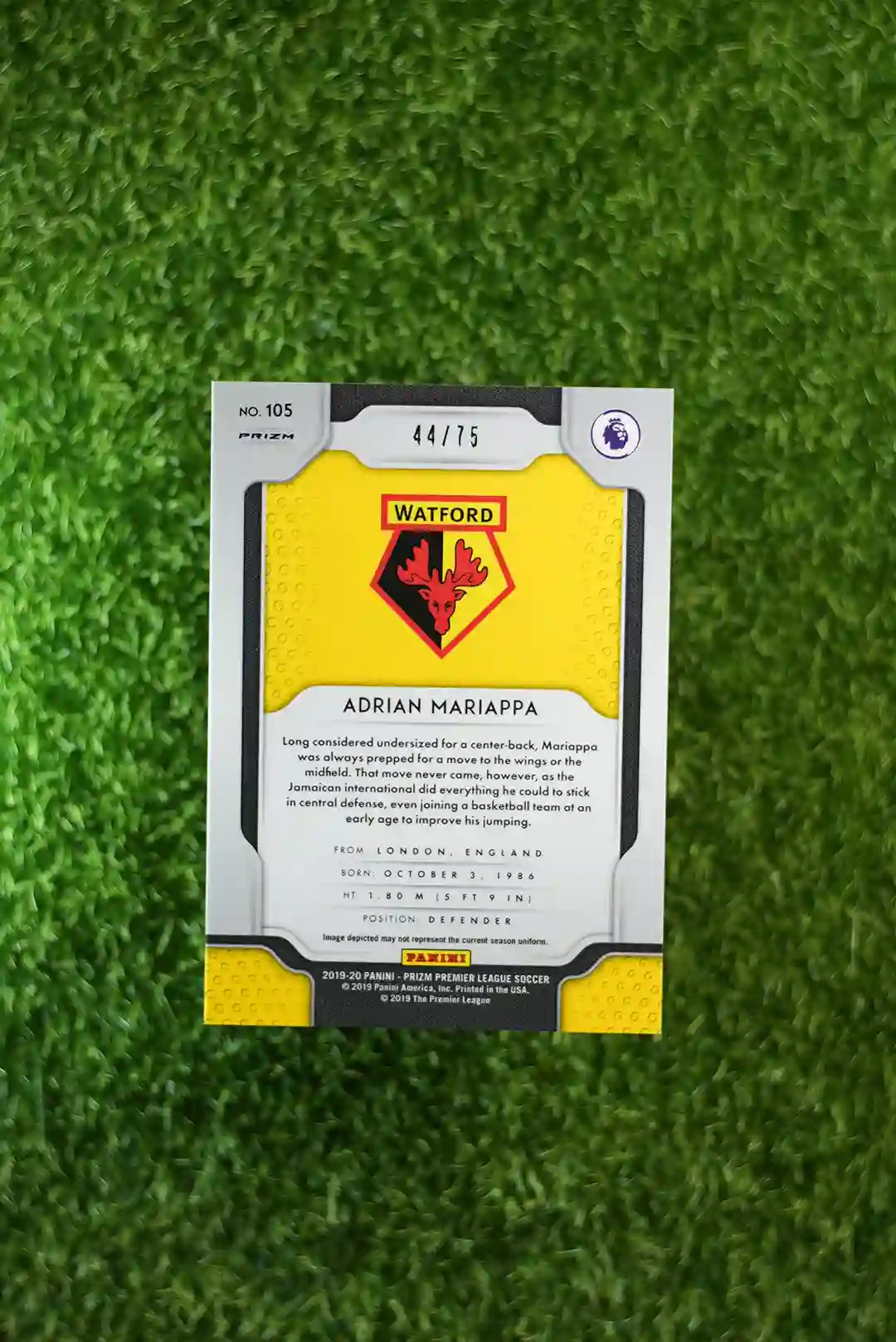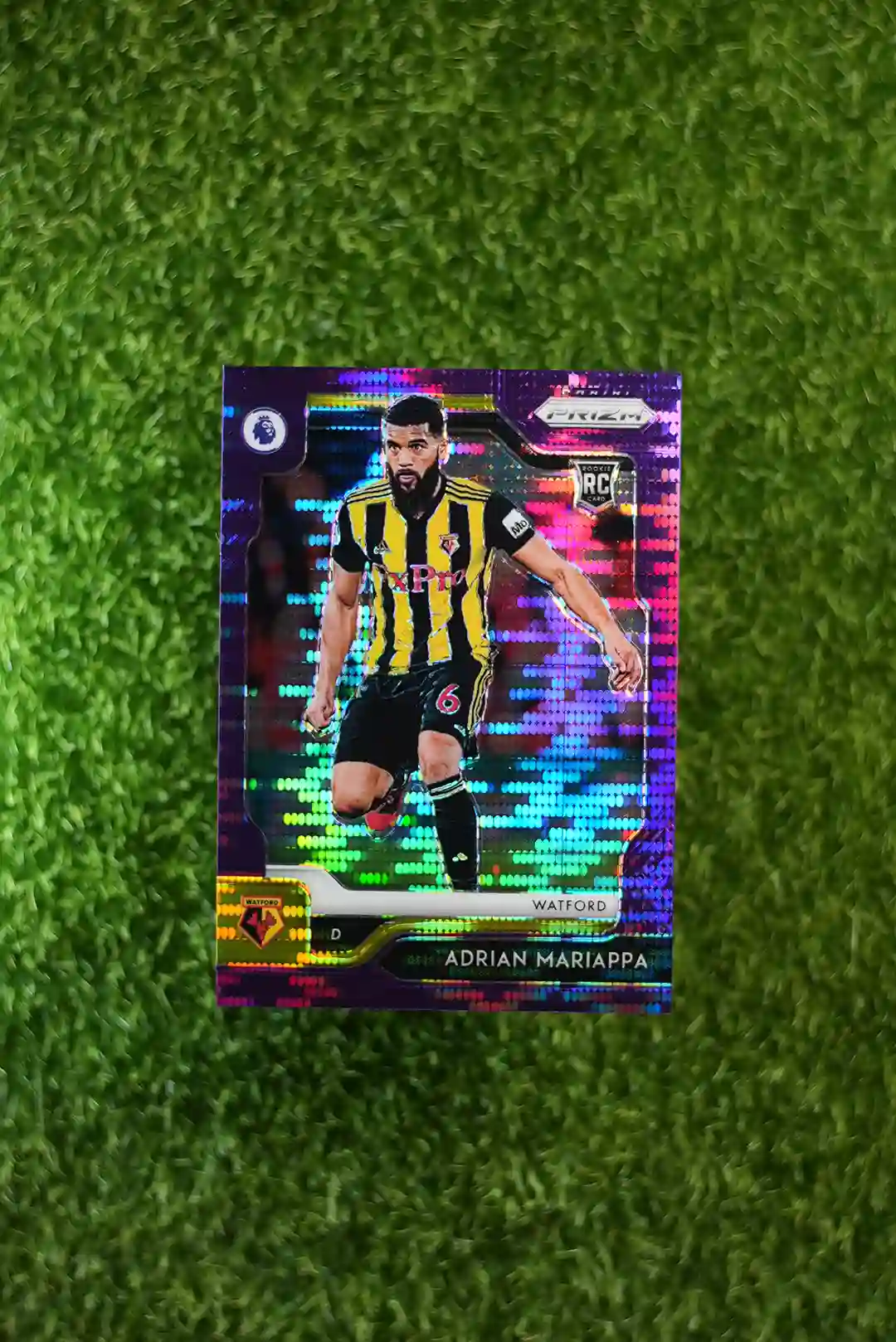 2019 Prizm Premier League Soccer Adrian Mariappa Purple Parallel numbered to 75.