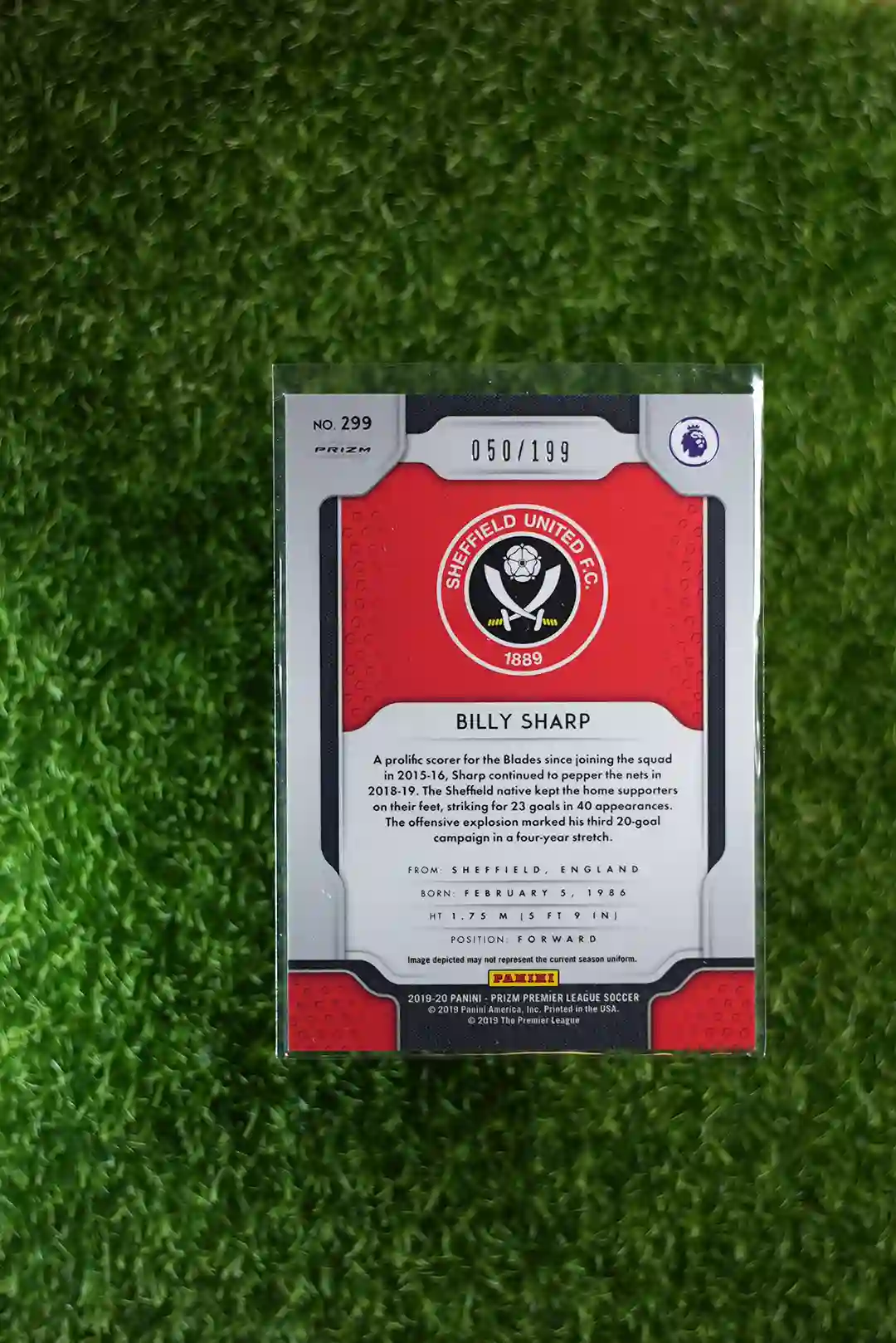 & Free Shipping2019 Prizm Premier League Soccer Billy Sharp Rookie Card (RC) Blue Prizm parallel, limited to /199 copies.