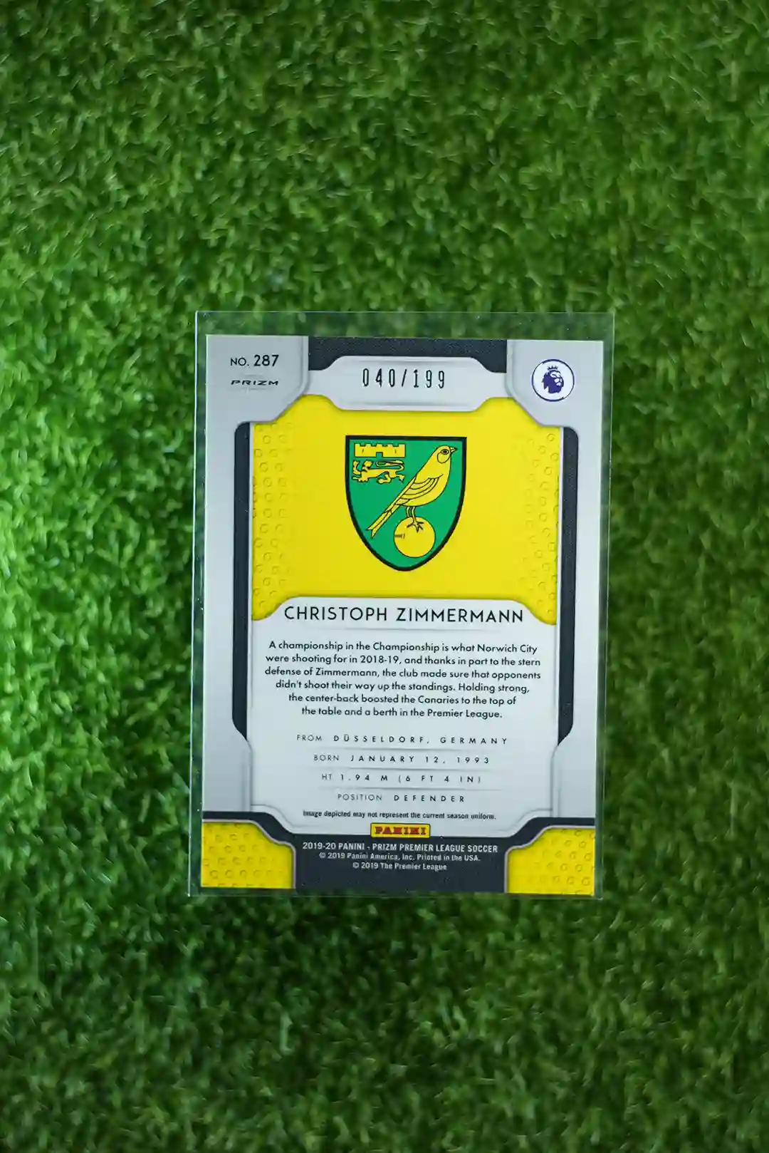 2019 Prizm Premier League Soccer Christoph Zimmermann Blue Prizm RC /199