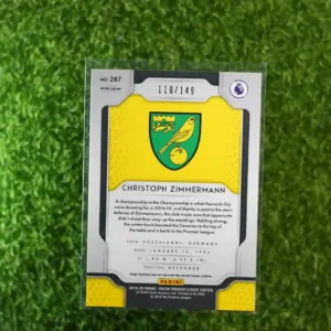& Free Shipping2019 Prizm Premier League Soccer Christoph Zimmermann Red Prizm RC, numbered to 149.