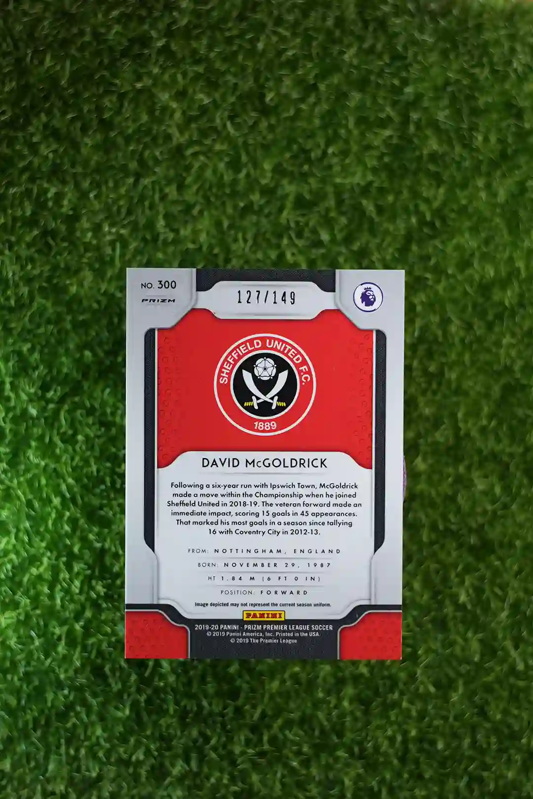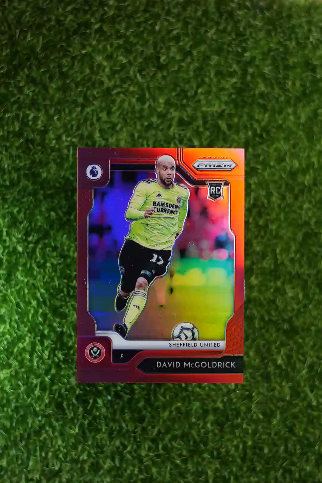& Free Shipping2019 Prizm Premier League Soccer David McGoldrick Rookie Card Red Prizm parallel, limited to just 149 copies.