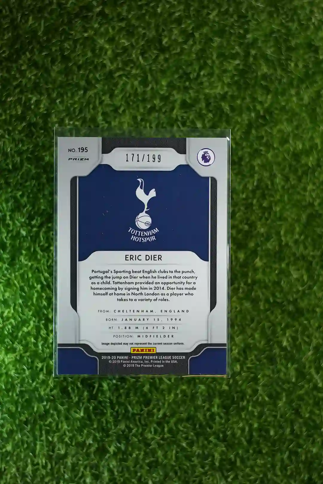 & Free ShippingThis card features Eric Dier from the 2019 Prizm Premier League Soccer set, presented as the vibrant Blue Prizm parallel. This particular card is part of a limited print run of 199 copies.