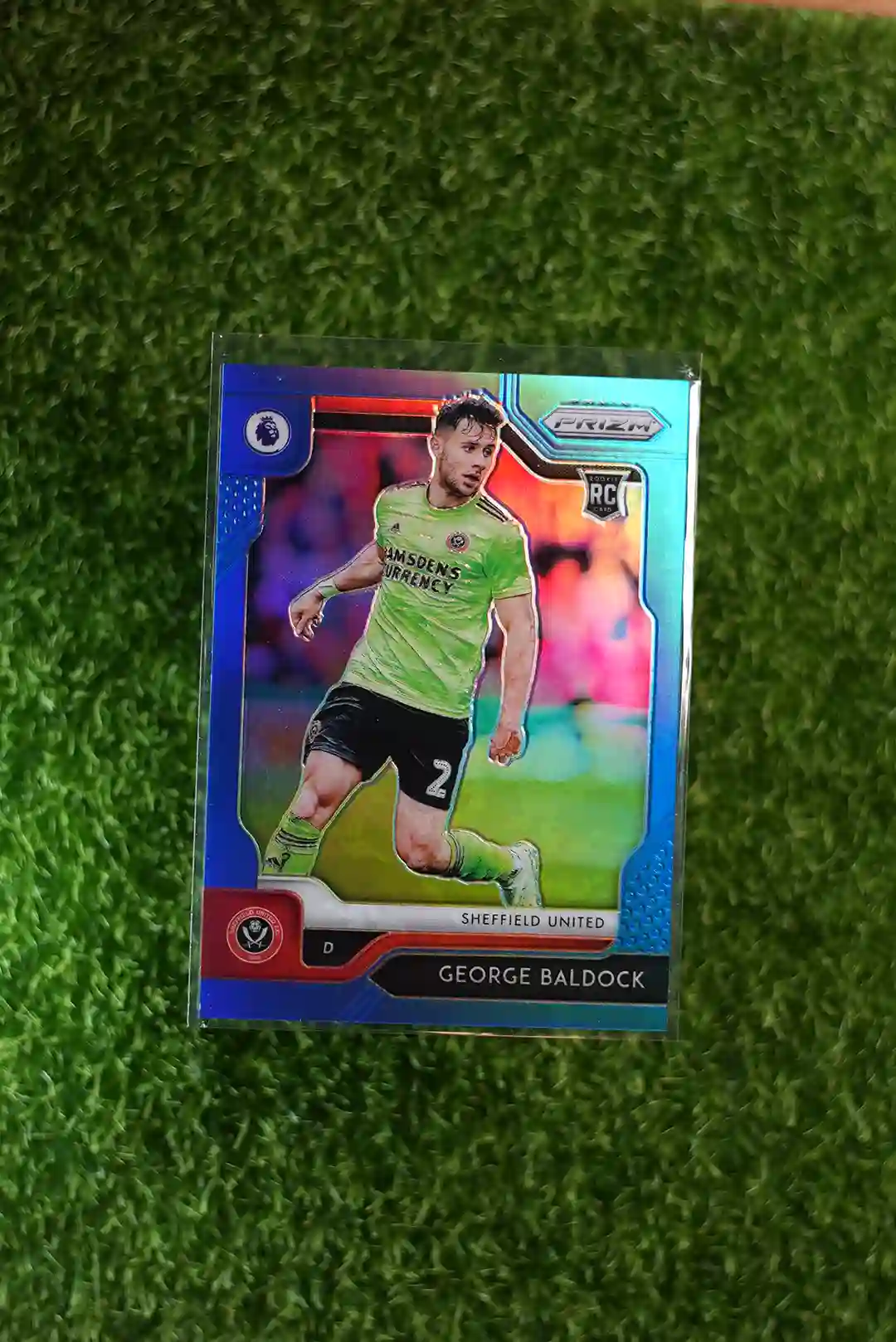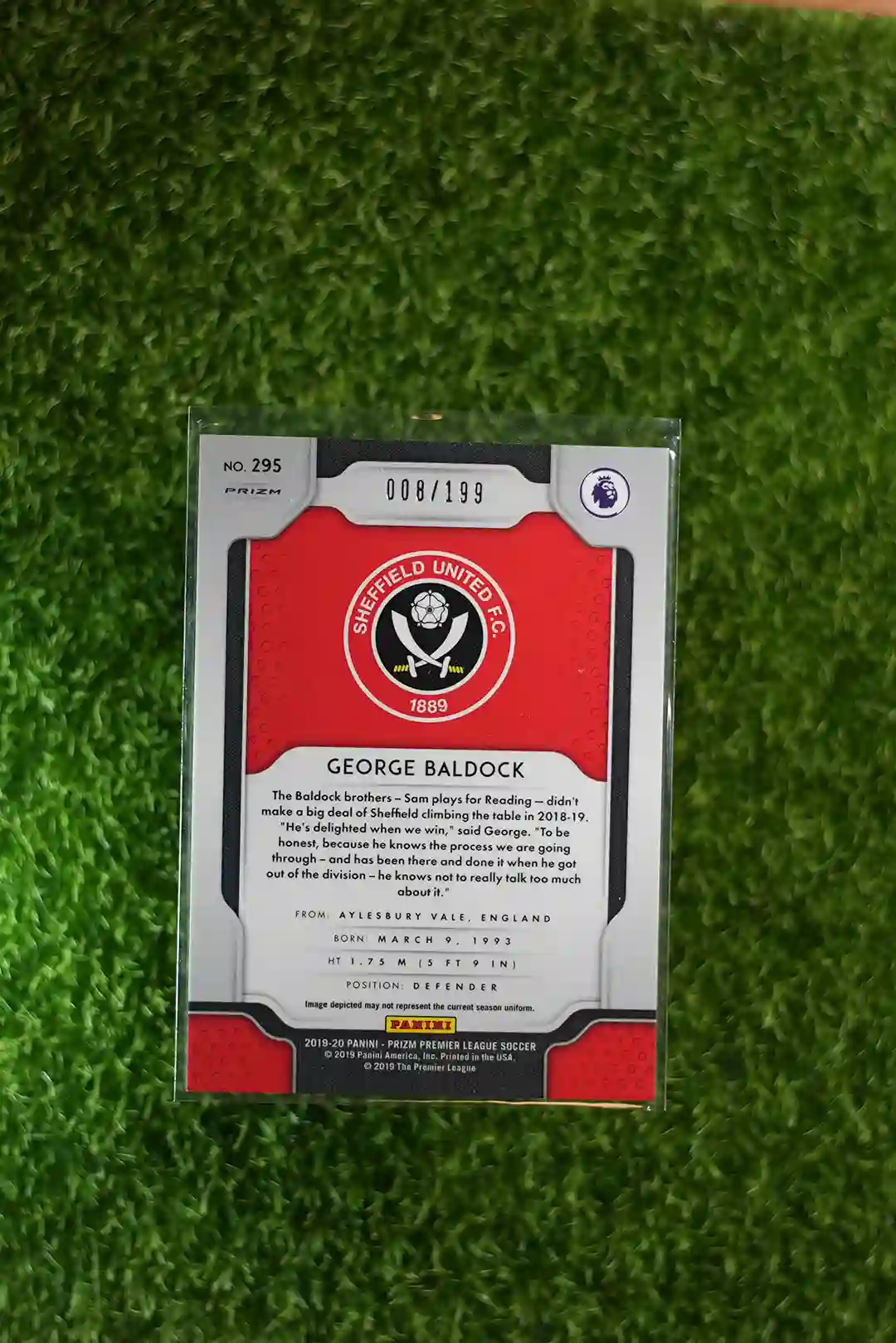 & Free Shipping2019 Prizm Premier League Soccer George Baldock Rookie Card Blue Prizm Parallel numbered to 199 copies.
