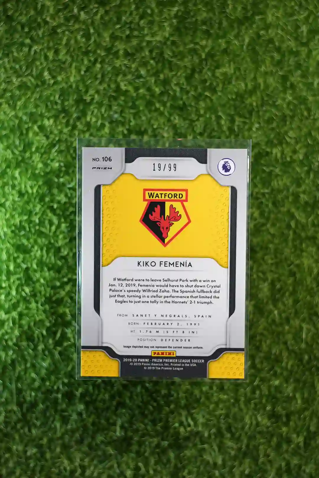 & Free Shipping2019 Prizm Premier League Soccer Kiko Femenía Pink parallel, serial numbered to 99 copies.